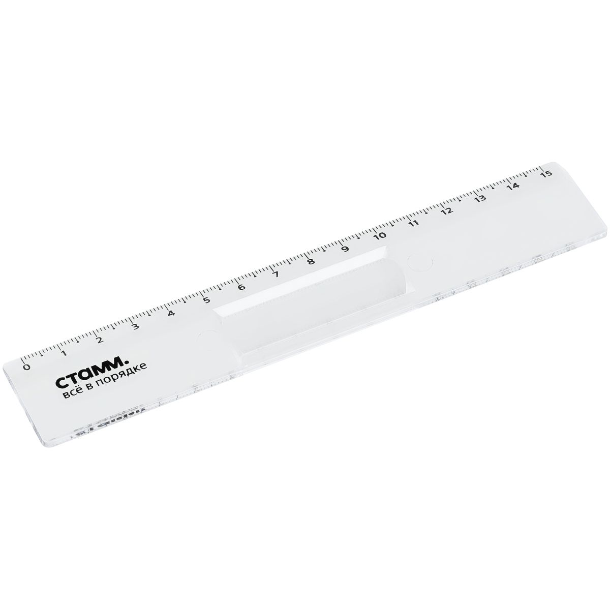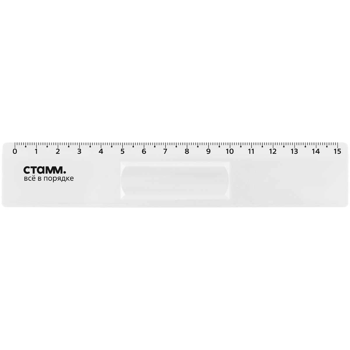 Линейка 15см СТАММ, пластиковая, с линзой, прозрачная, бесцветная, европодвес