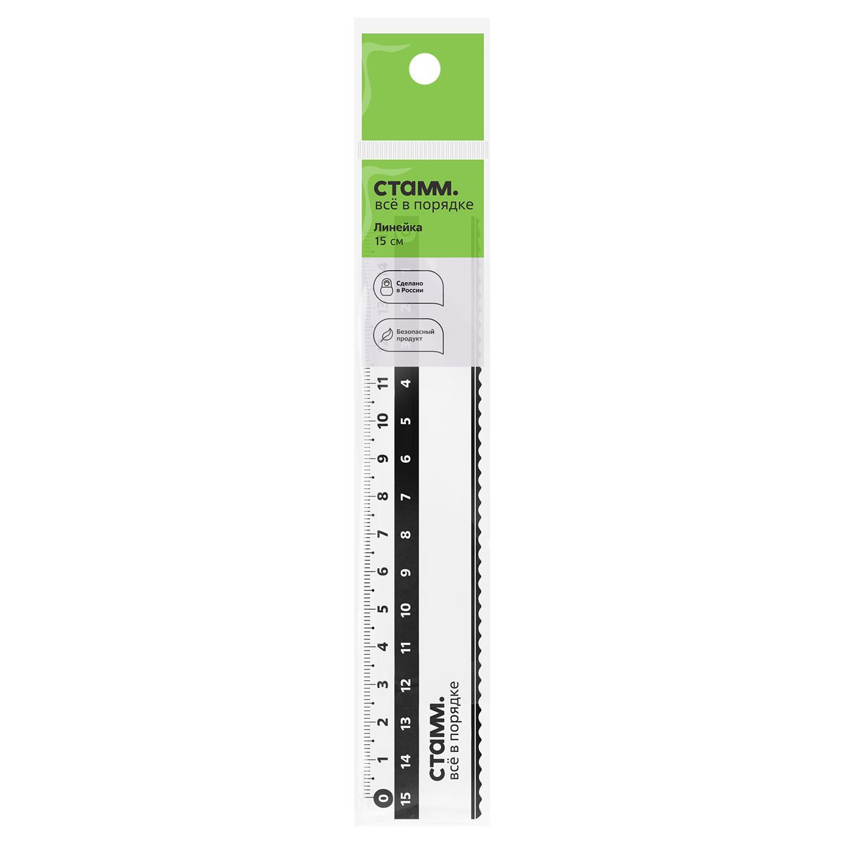 Линейка 15см СТАММ, пластиковая, с волнистым краем, двойная шкала, прозрачная, бесцветная, европодвес