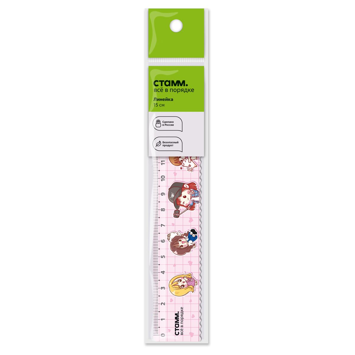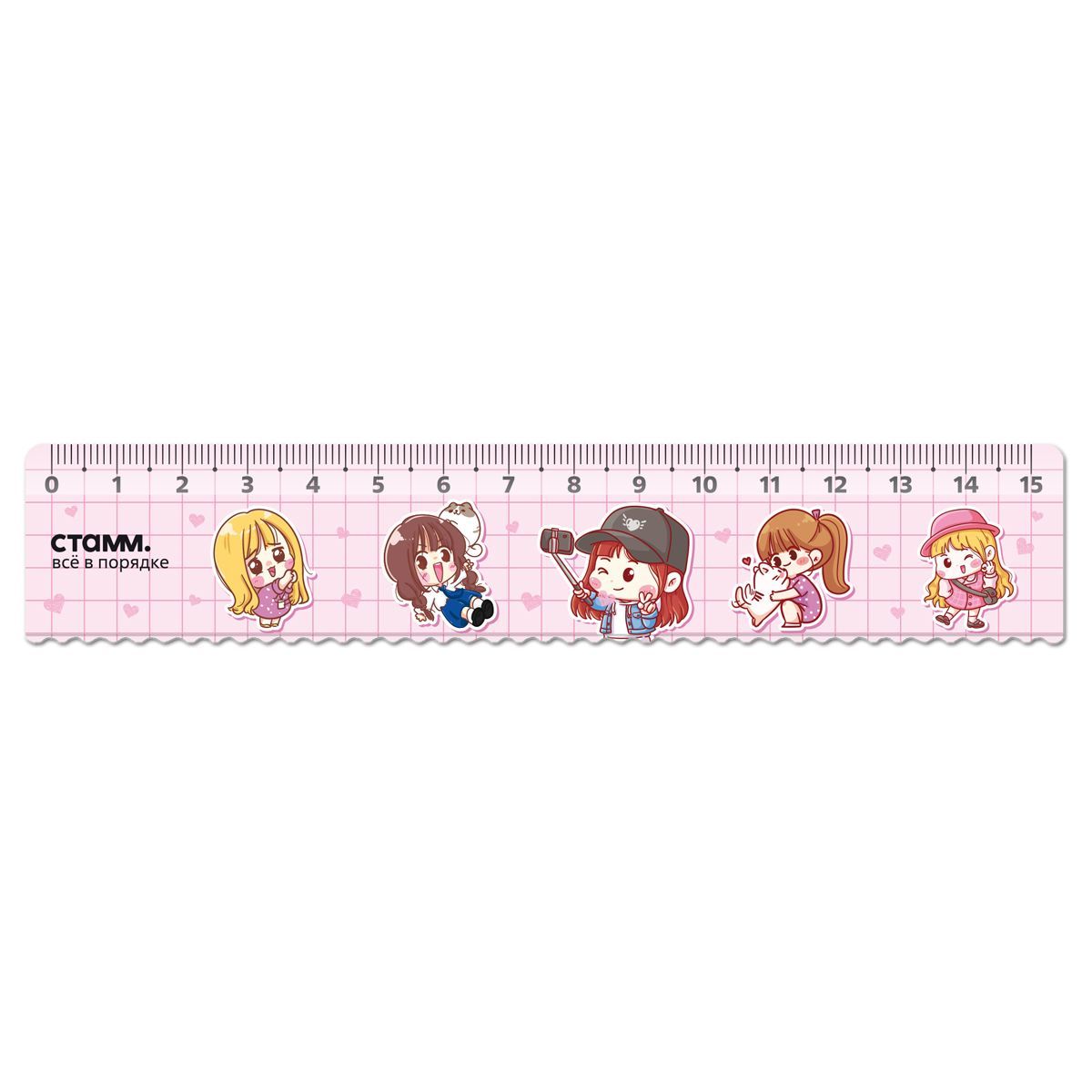 Линейка 15см СТАММ "Подружки", пластиковая, с волнистым краем, европодвес