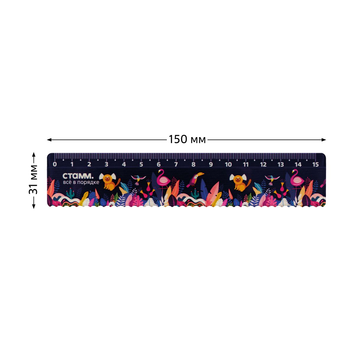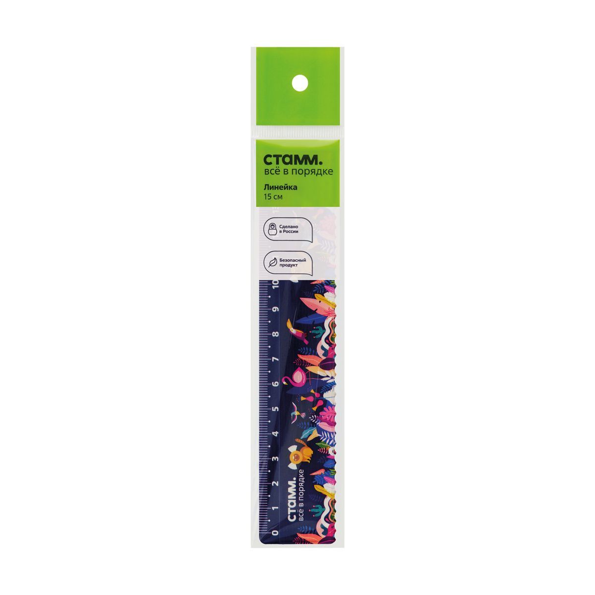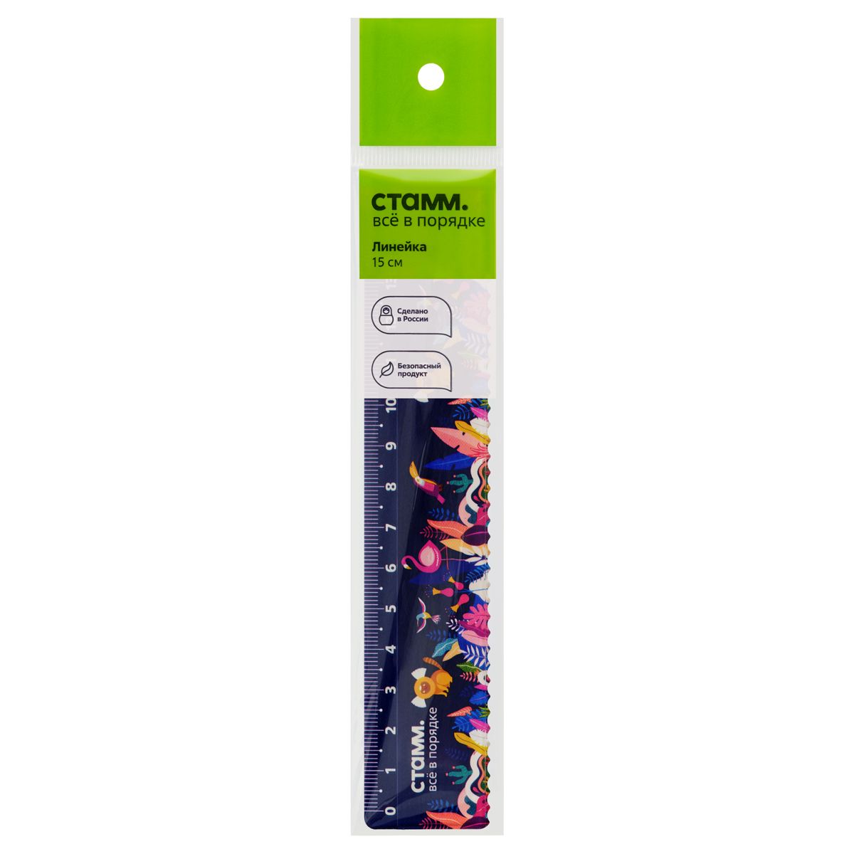 Линейка 15см СТАММ "Тропики", пластиковая, с волнистым краем, европодвес