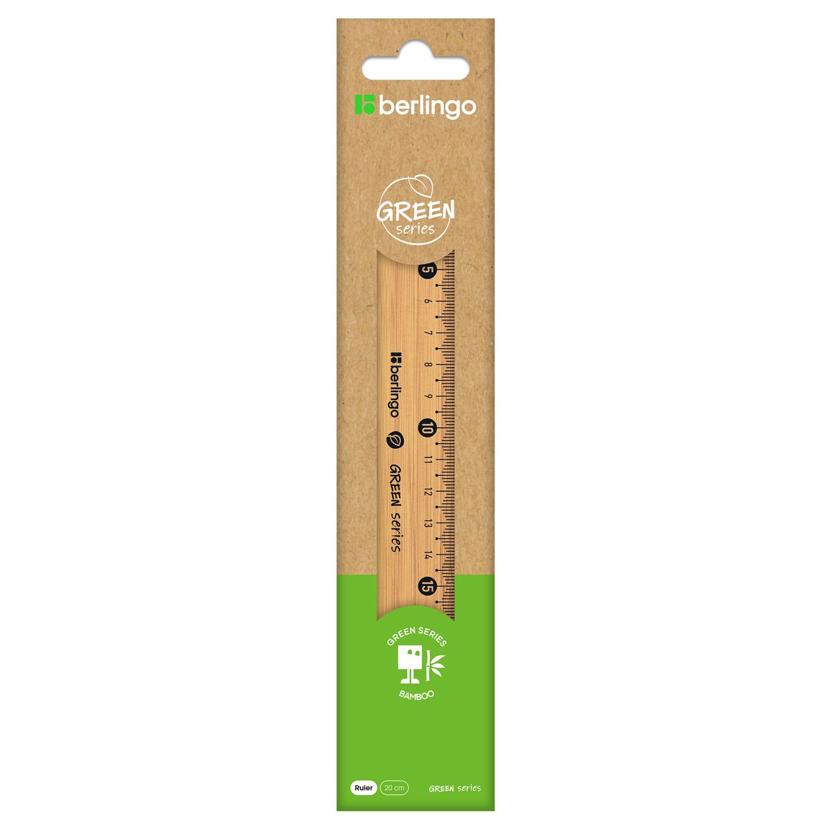 Линейка 20см Berlingo "Green Series", бамбук, европодвес