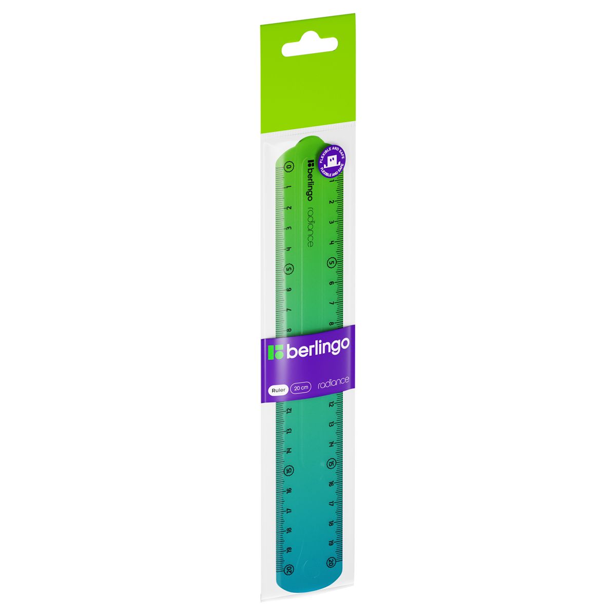Линейка 20см Berlingo "Radiance", пластиковая, гибкая, голубой/зеленый градиент, европодвес