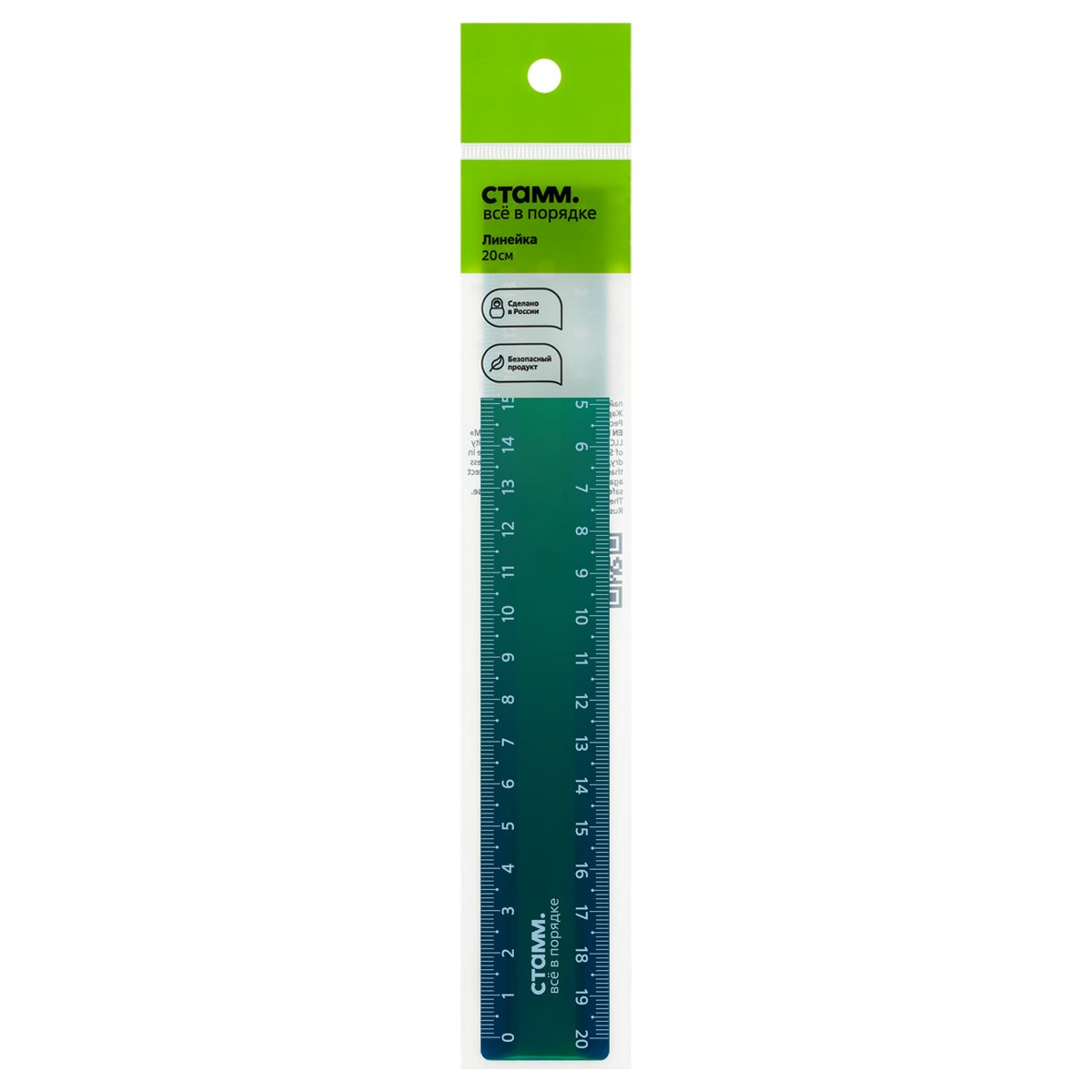 Линейка 20см СТАММ "Хамелеон", пластиковая, 2 шкалы, зеленый хамелеон, европодвесс