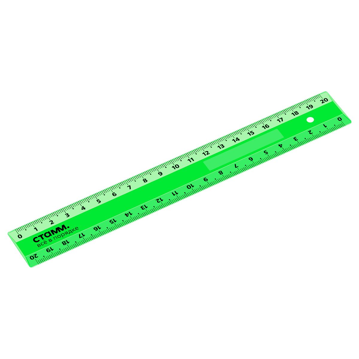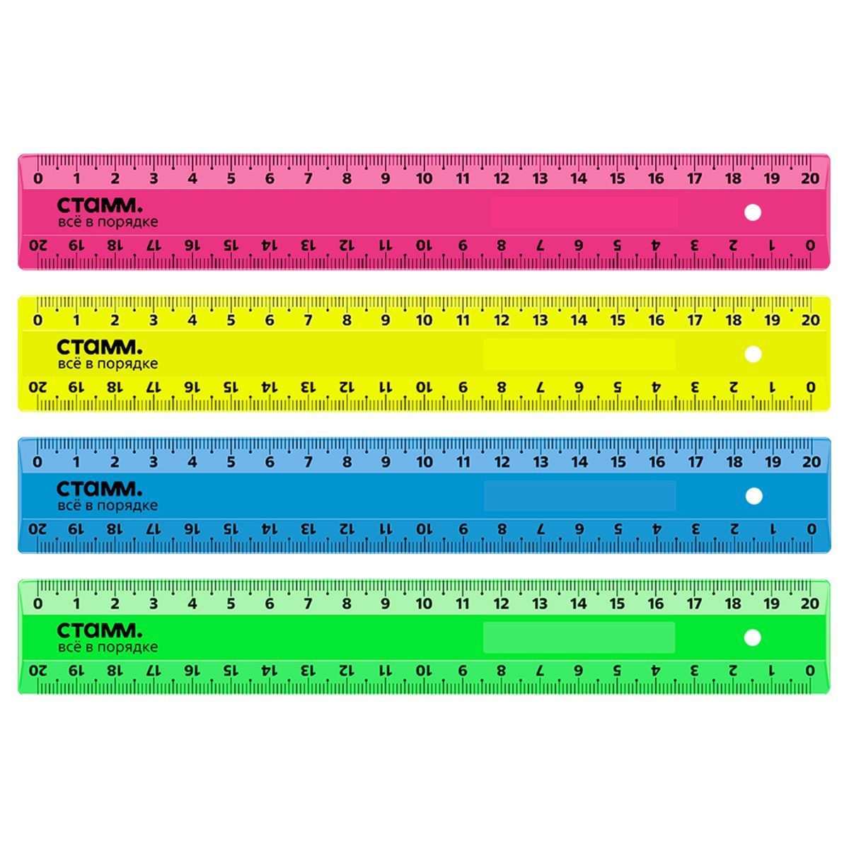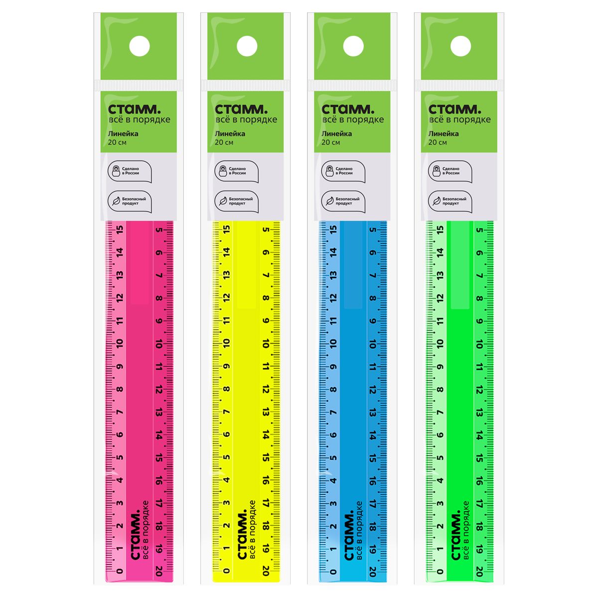 Линейка 20см СТАММ, пластиковая, 2 шкалы, непрозрачная, неоновые цвета, ассорти, европодвес