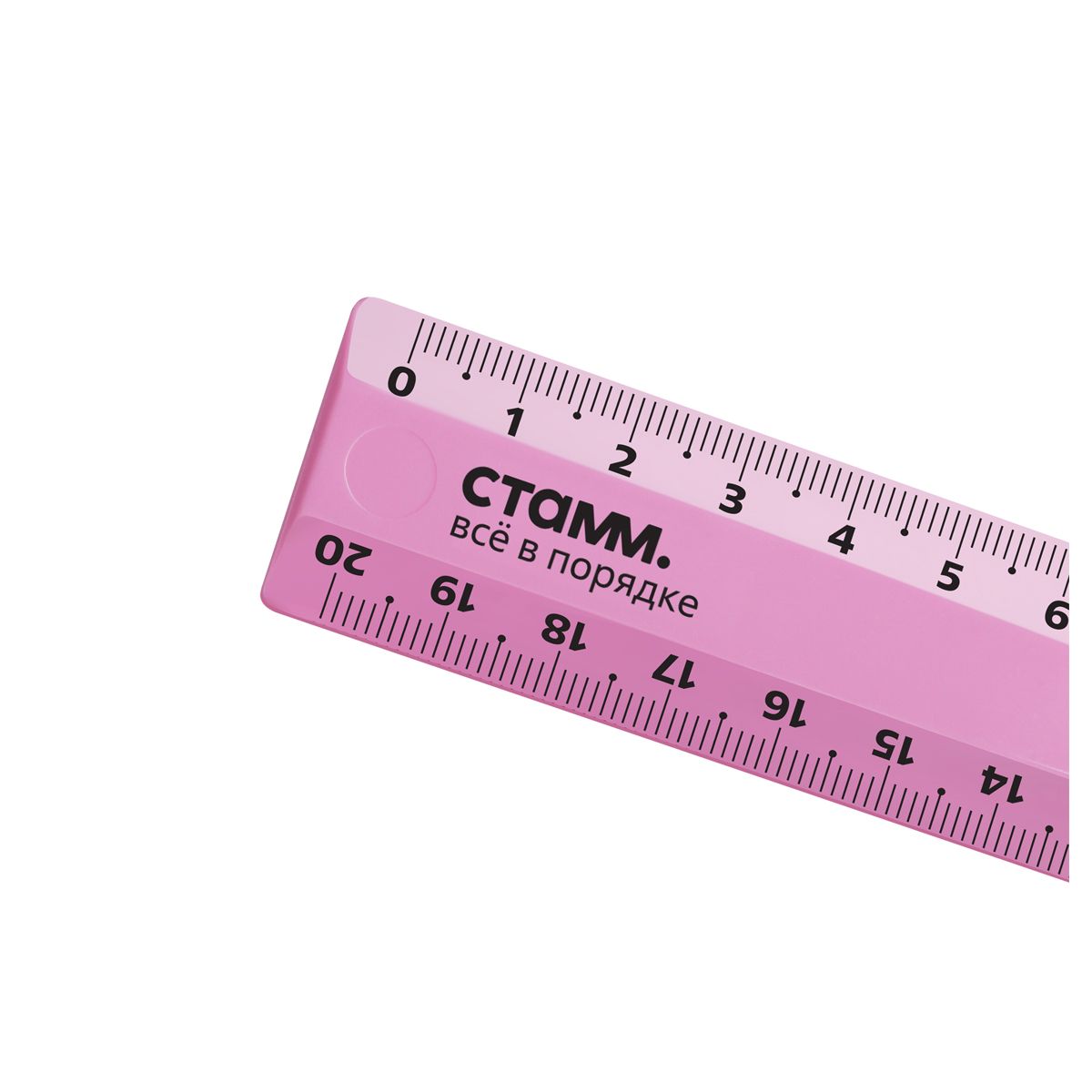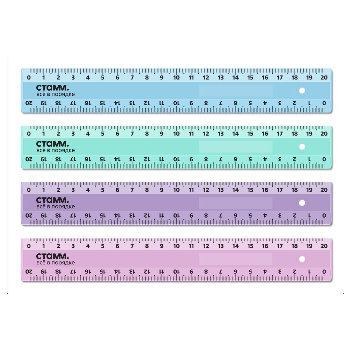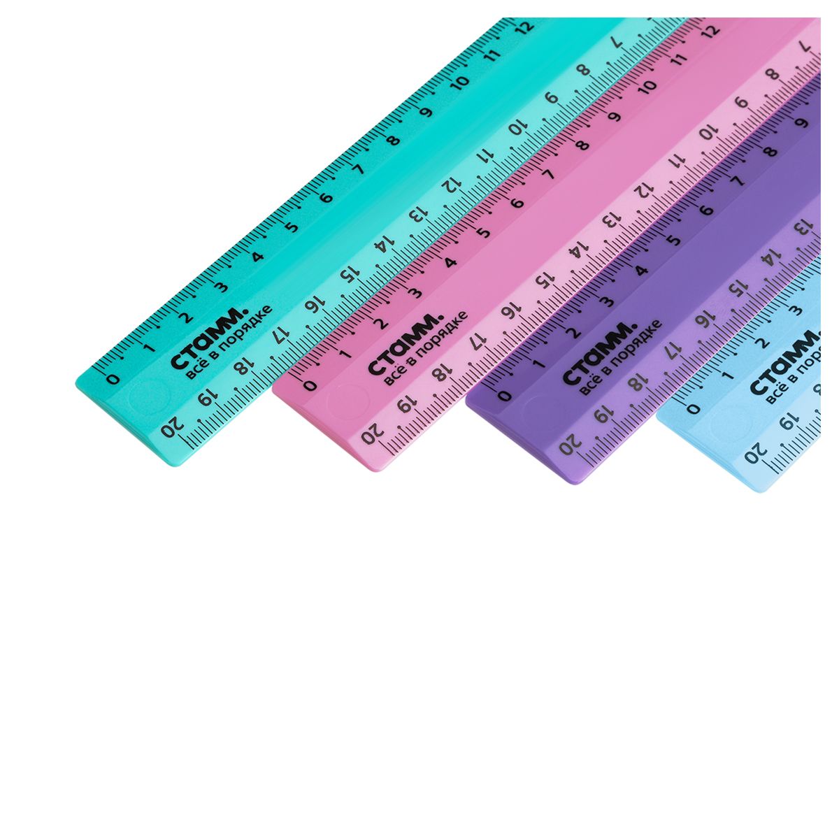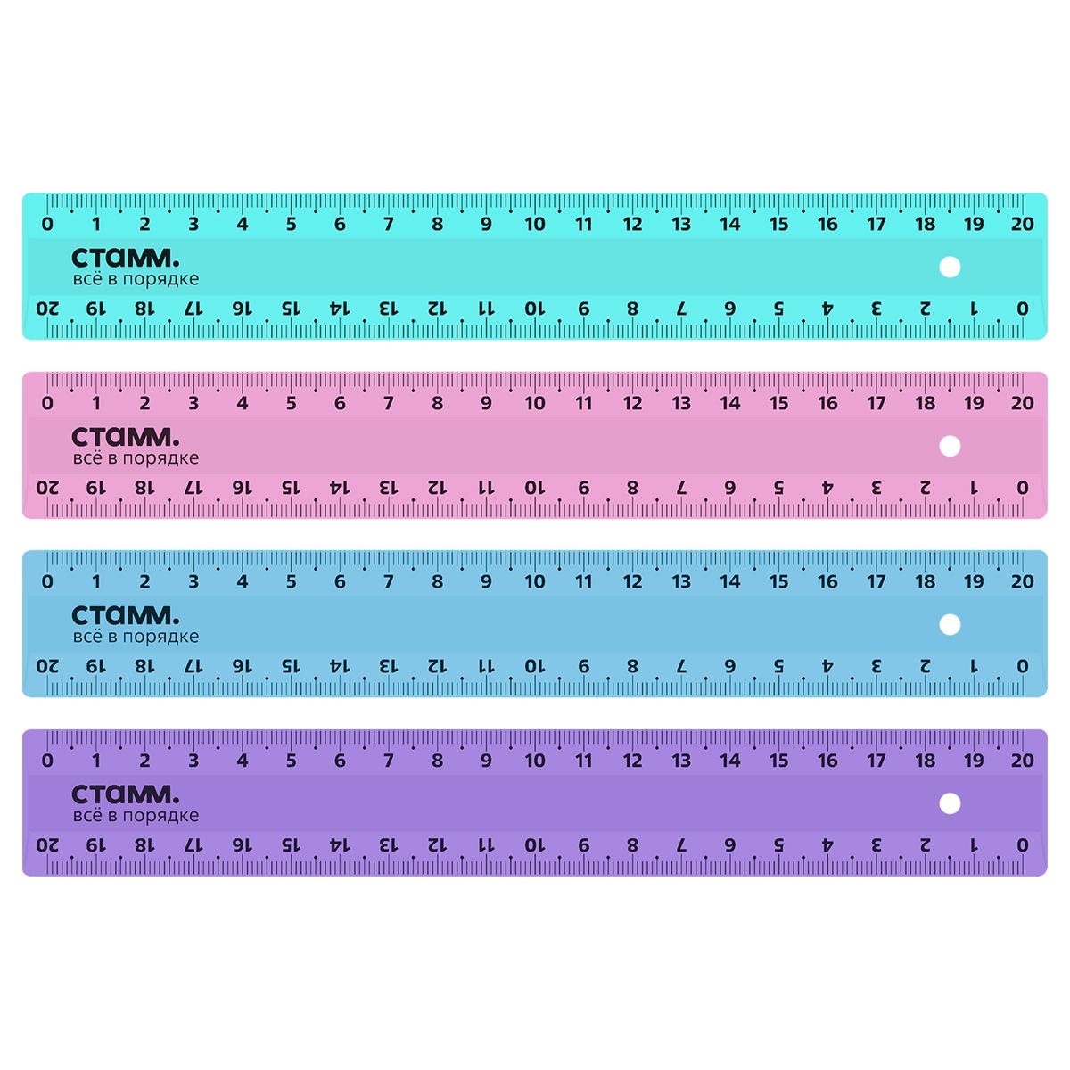 Линейка 20см СТАММ, пластиковая, 2 шкалы, непрозрачная, пастельные цвета, ассорти, европодвес