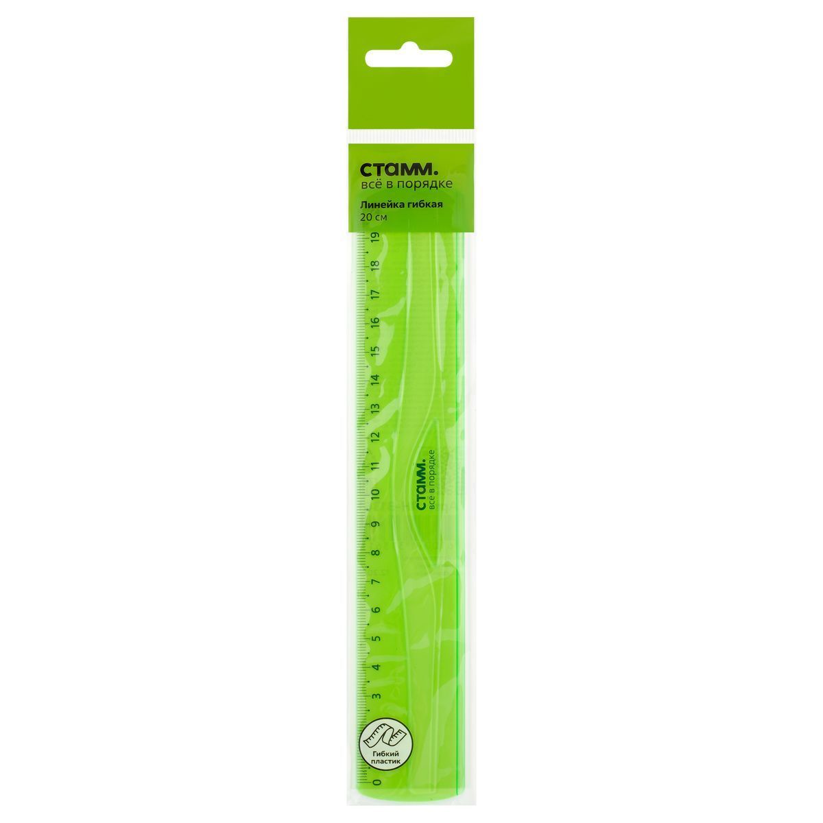 Линейка 20см СТАММ, пластиковая, гибкая, прозрачная, зеленая, европодвес