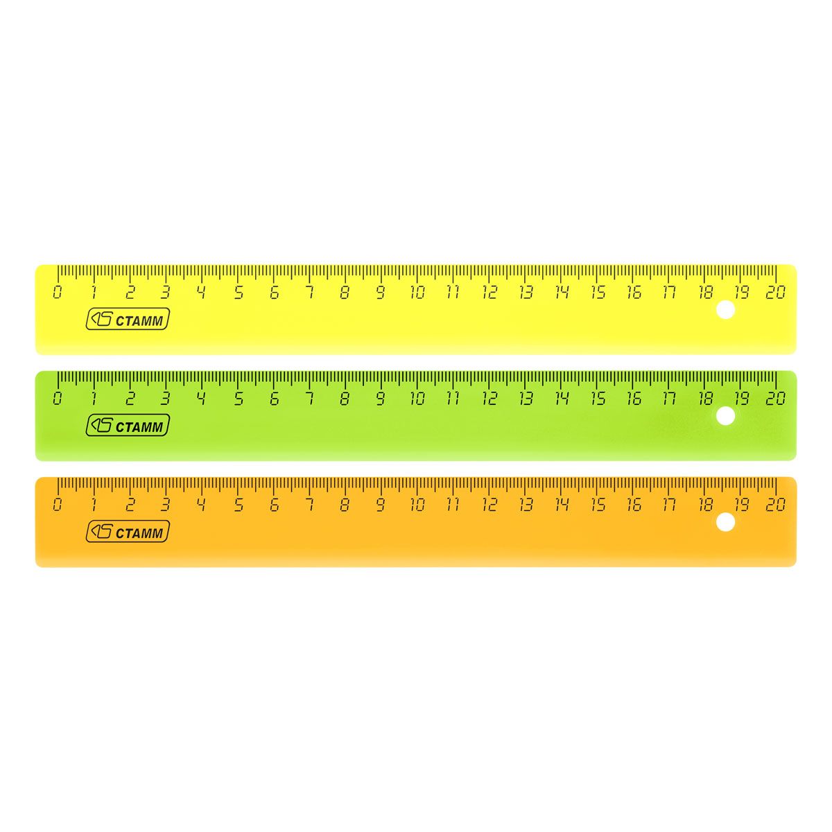 Линейка 20см СТАММ, пластиковая, непрозрачная, неоновые цвета, ассорти