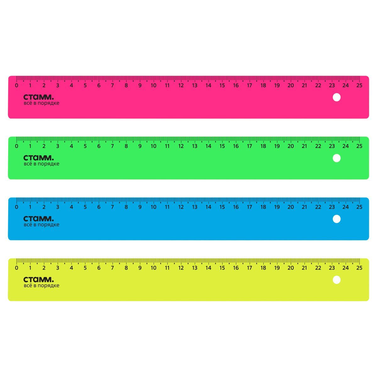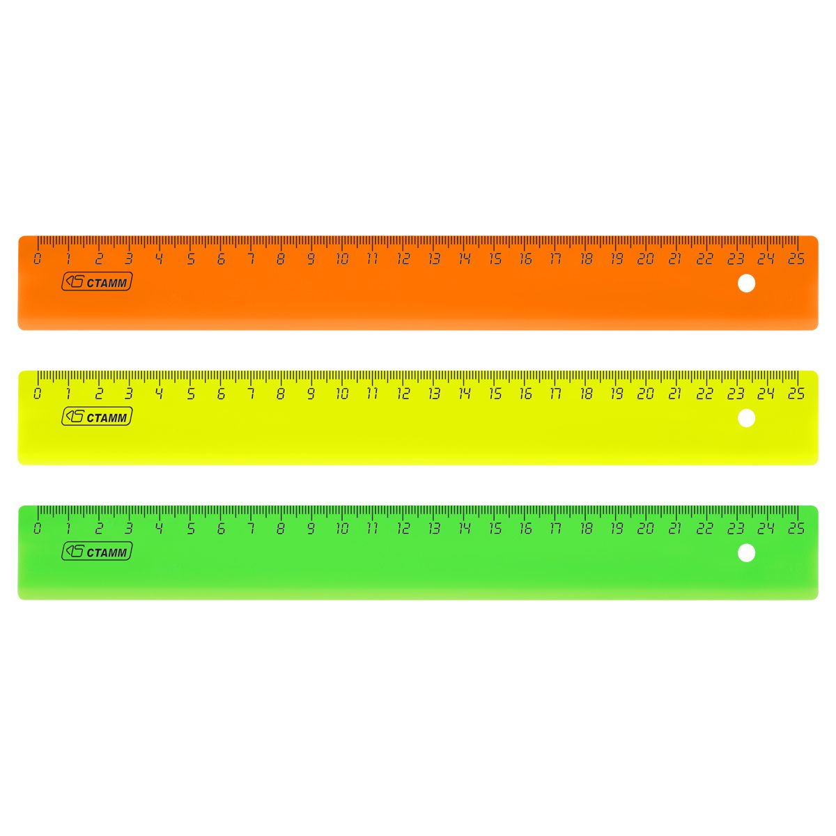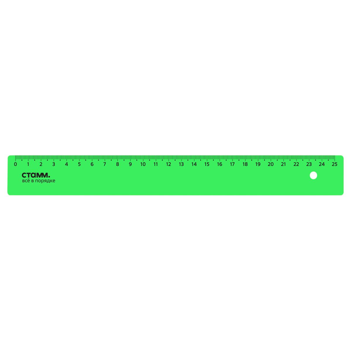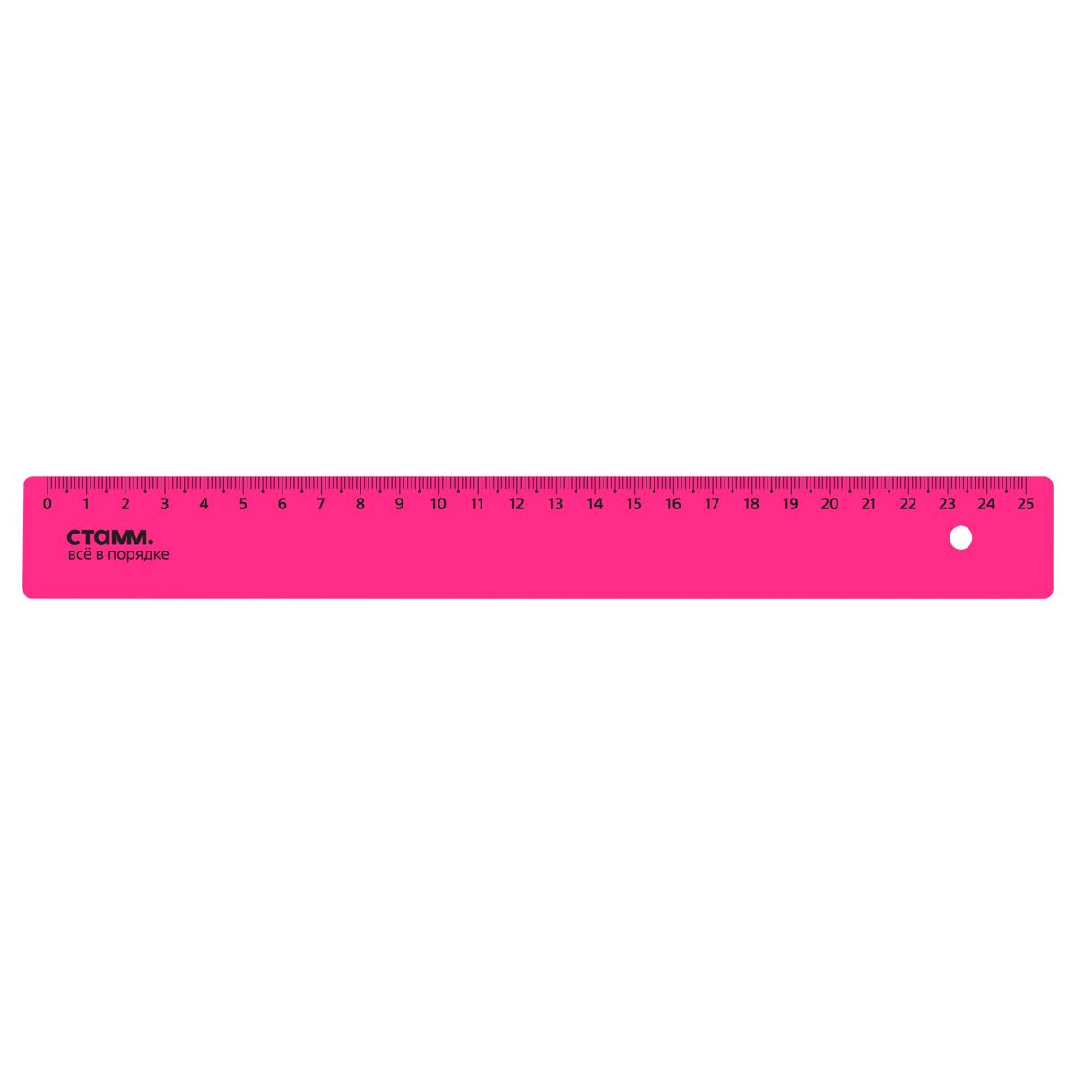 Линейка 25см СТАММ, пластиковая, непрозрачная, неоновые цвета, ассорти