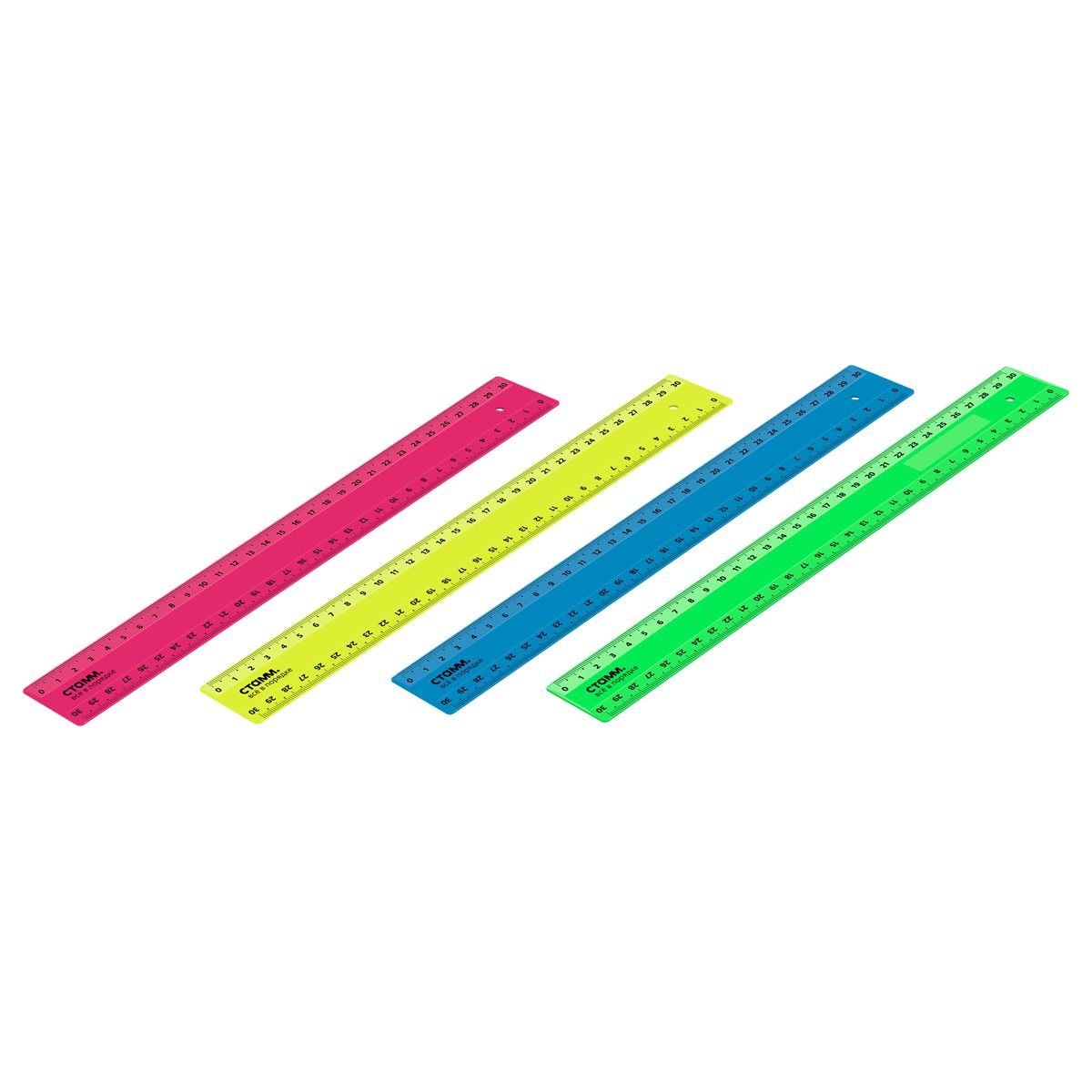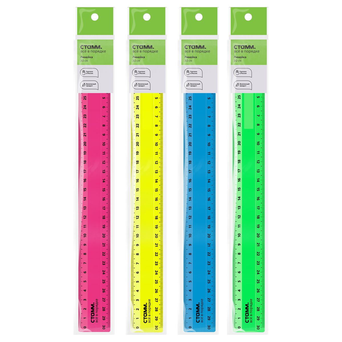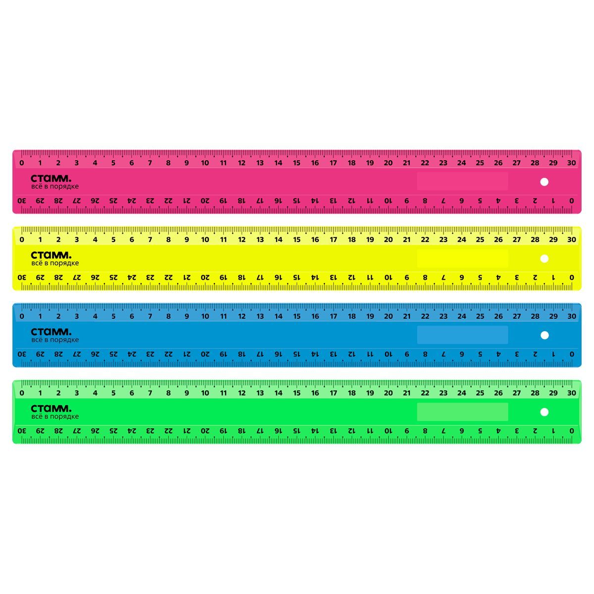 Линейка 30см СТАММ, пластиковая, 2 шкалы, непрозрачная, неоновые цвета, ассорти, европодвес