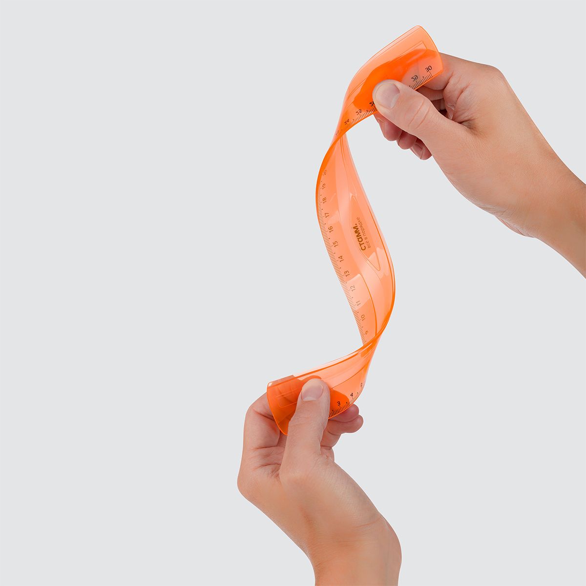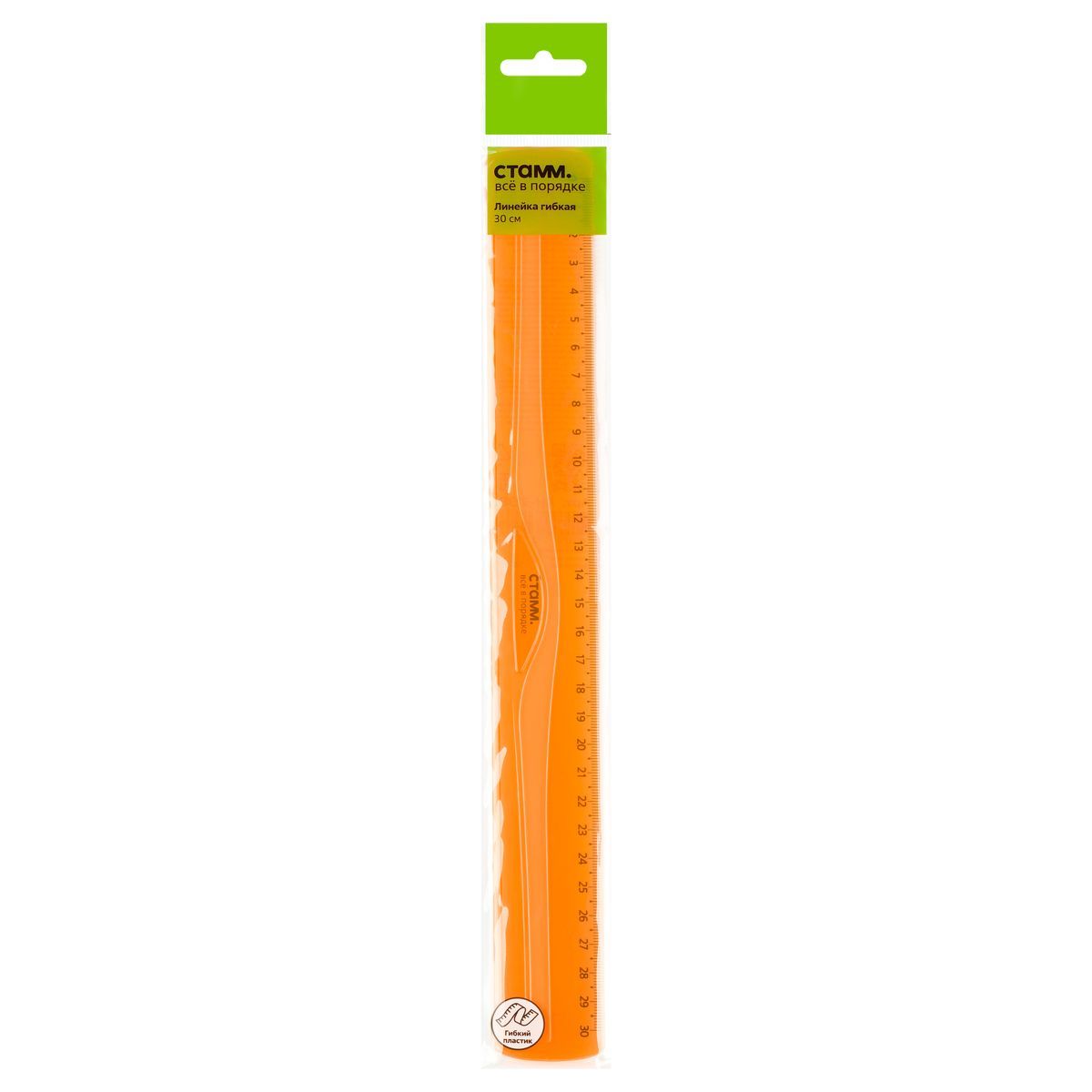 Линейка 30см СТАММ, пластиковая, гибкая, прозрачная, оранжевая, европодвес