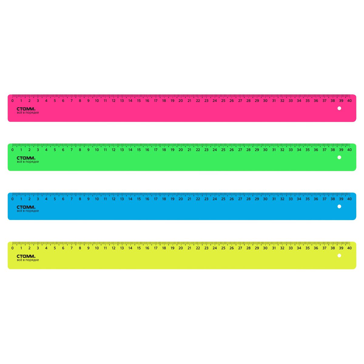 Линейка 40см СТАММ, пластиковая, непрозрачная, неоновые цвета, ассорти