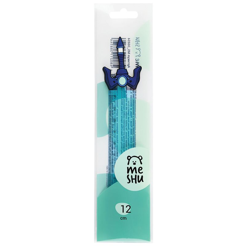 Линейка с топпером 12см MESHU "Blue sword", пластиковая, европодвес
