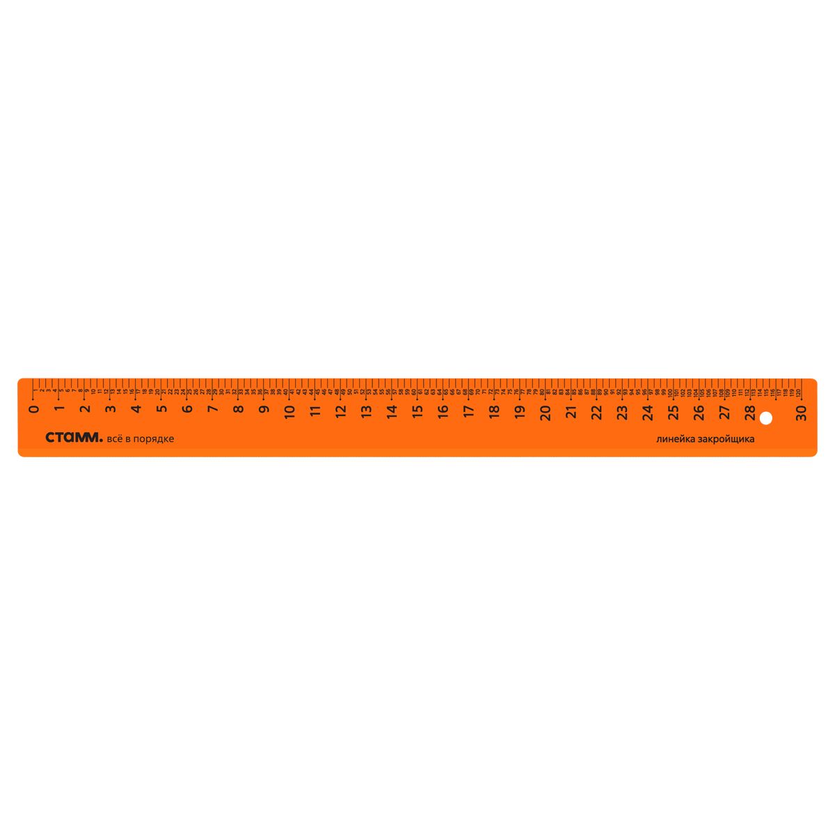 Линейка закройщика 30см СТАММ, пластиковая, прозрачная, оранжевая