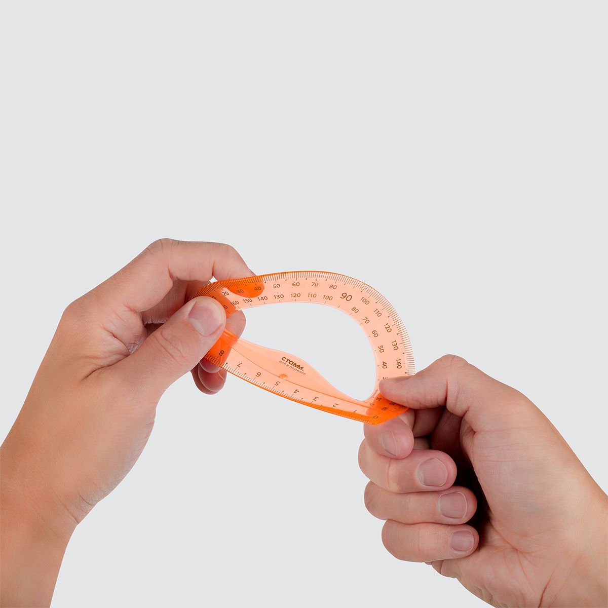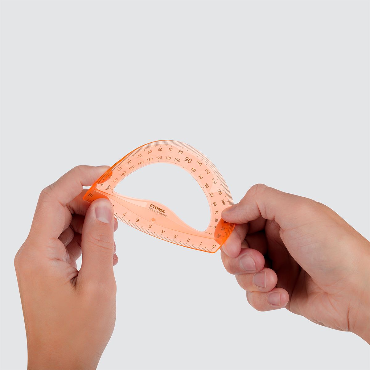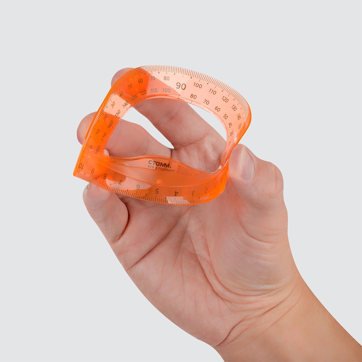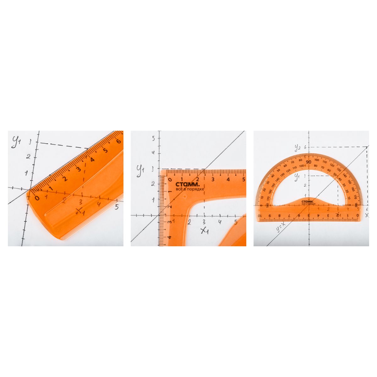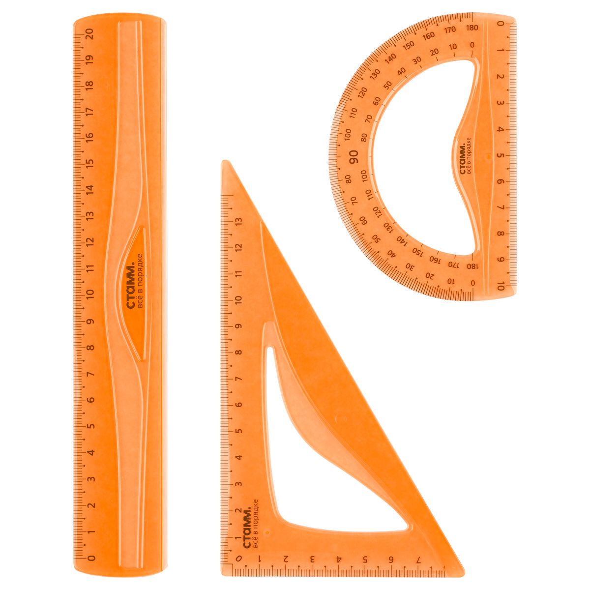 Набор чертежный СТАММ, размер M (линейка 20см, треугольник, транспортир), гибкий, прозрачный, оранжевый, европодвес