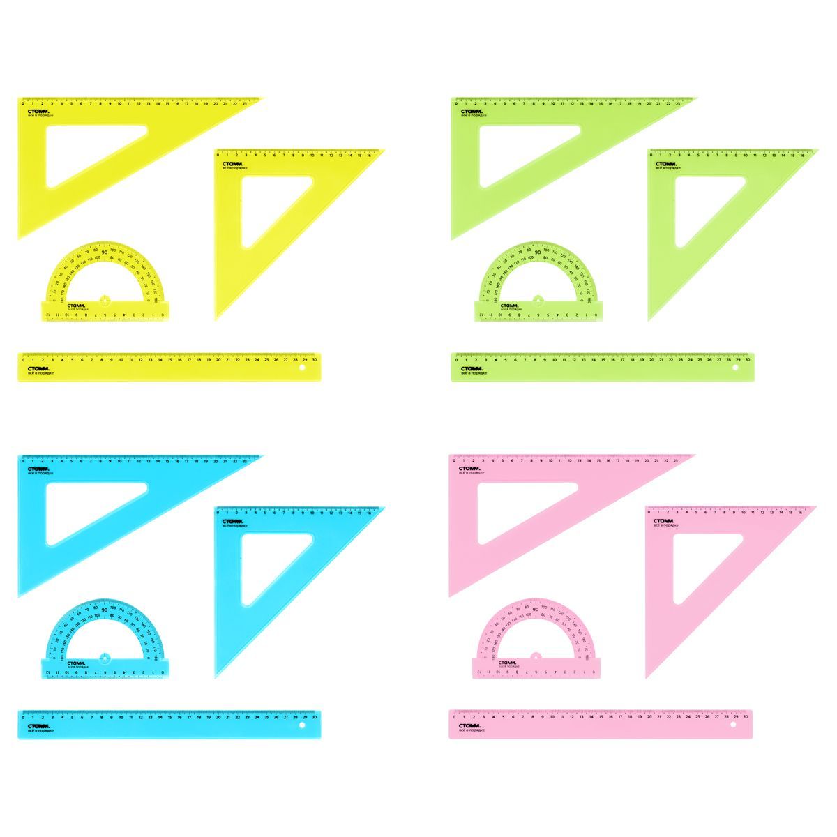 Набор чертежный СТАММ, размер XL (линейка 30см, 2 треугольника, транспортир), прозрачный, неоновые цвета, ассорти, европодвес