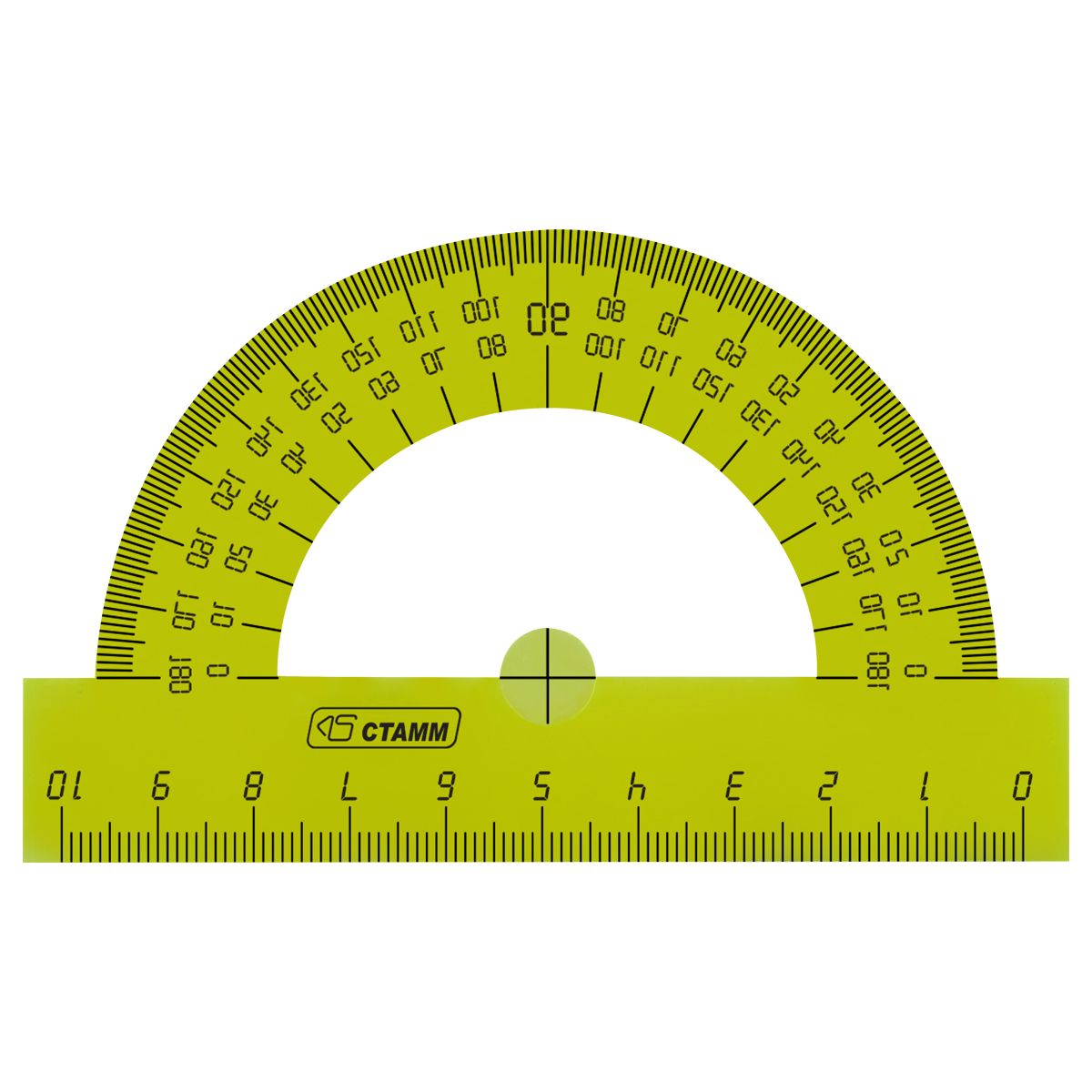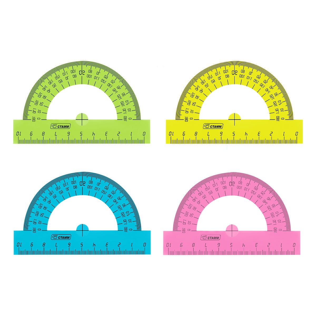 Транспортир 10см, 180° СТАММ, пластиковый, прозрачный, неоновые цвета, ассорти
