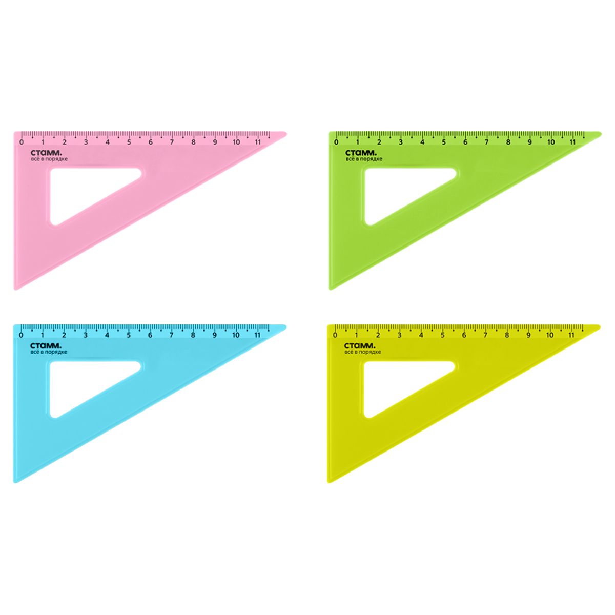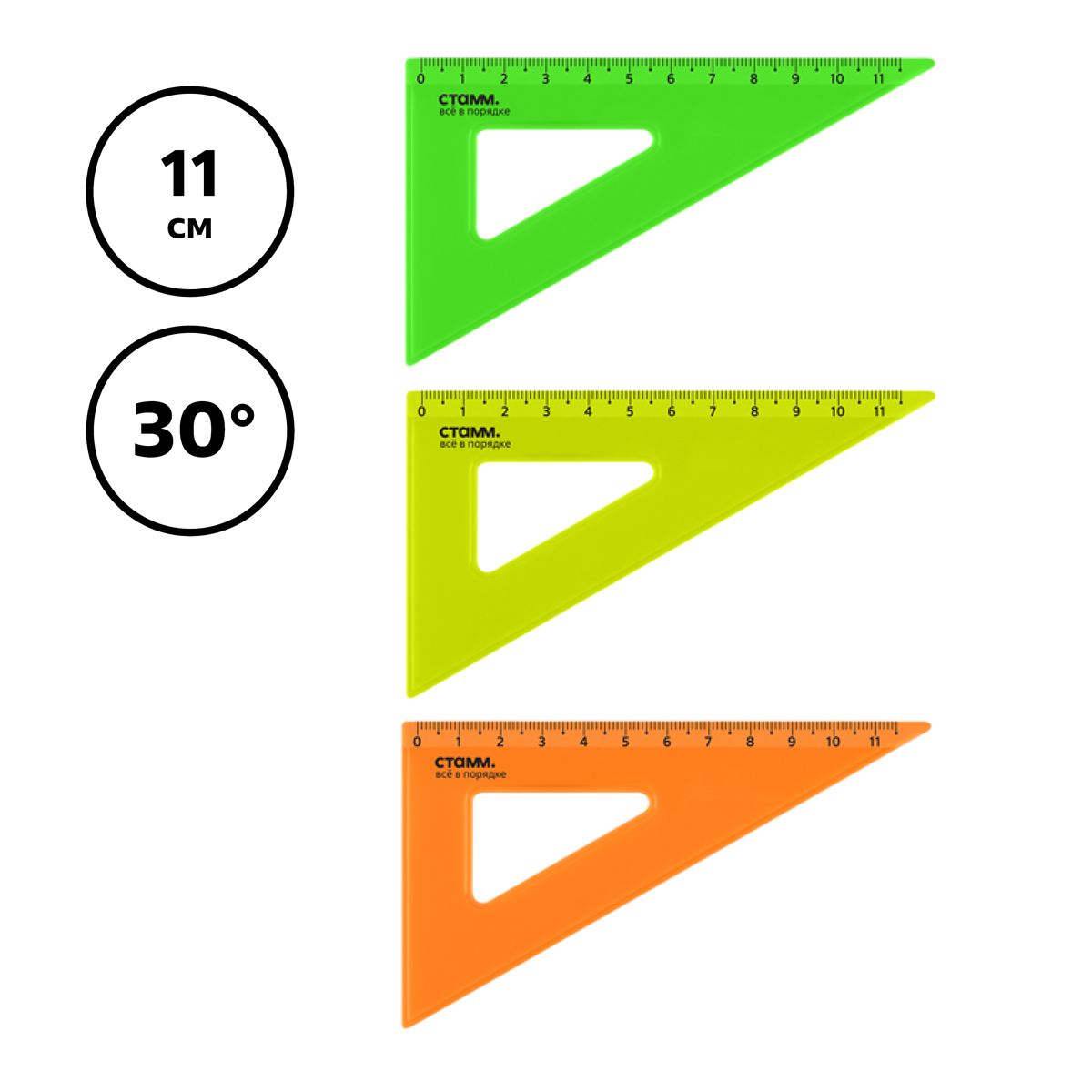 Треугольник 30°, 11см СТАММ, пластиковый, прозрачный, неоновые цвета, ассорти