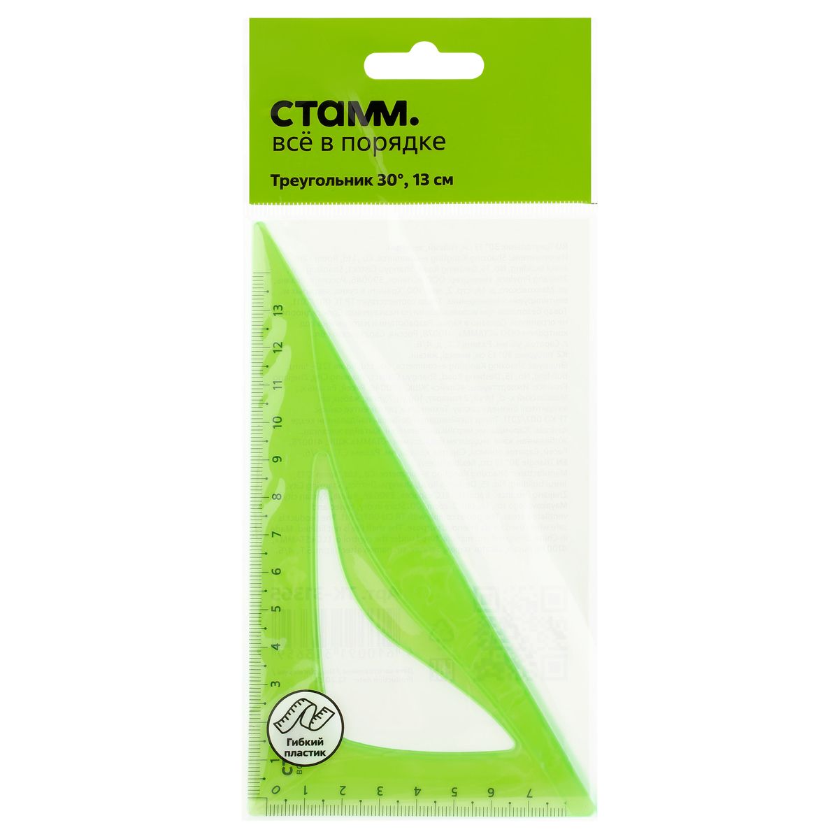 Треугольник 30°, 13см СТАММ, пластиковый, гибкий, прозрачный, зеленый, европодвес