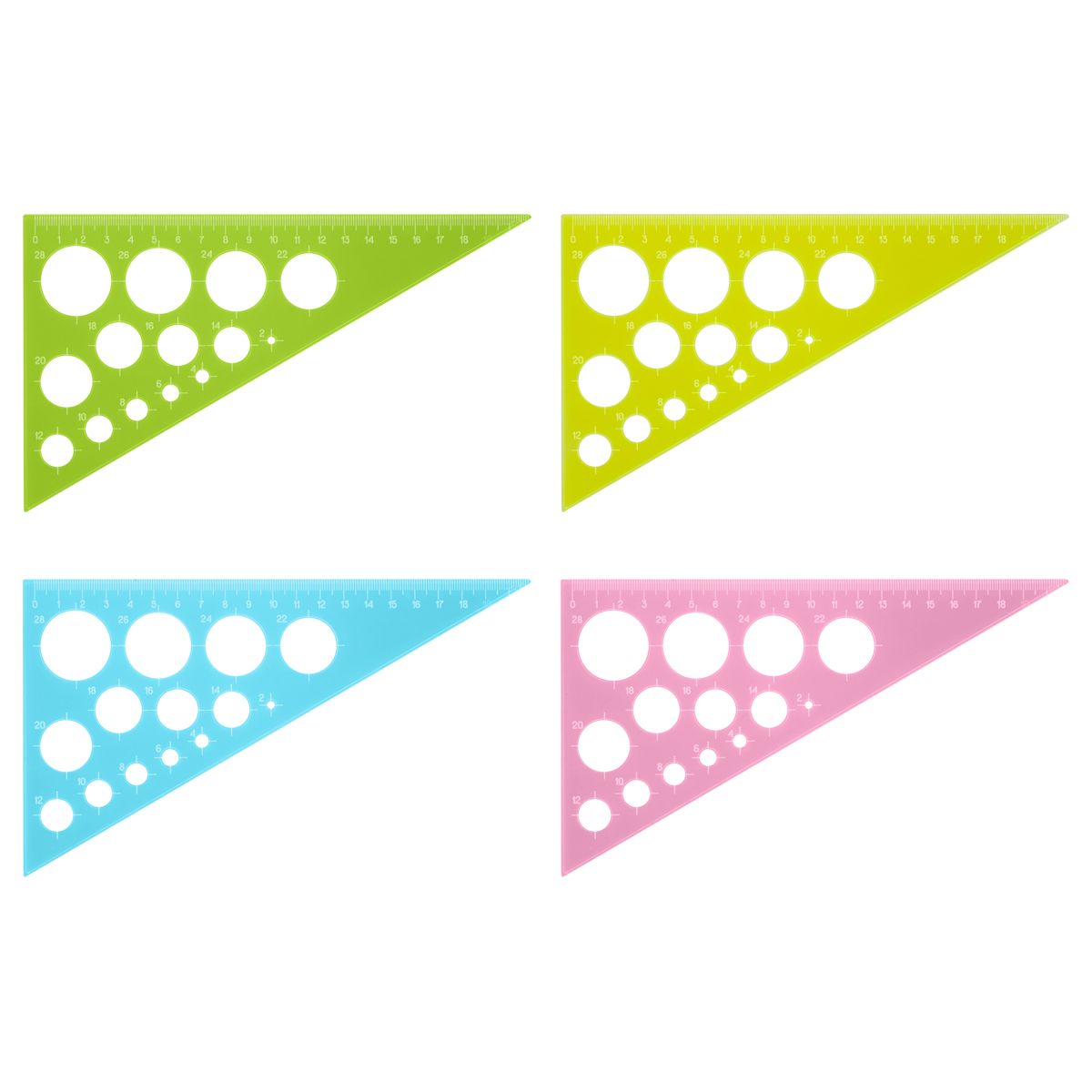 Треугольник 30°, 19см СТАММ, пластиковый, с окружностями, прозрачный, неоновые цвета, ассорти
