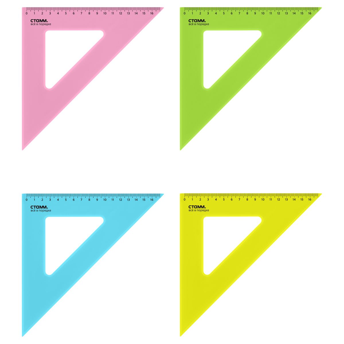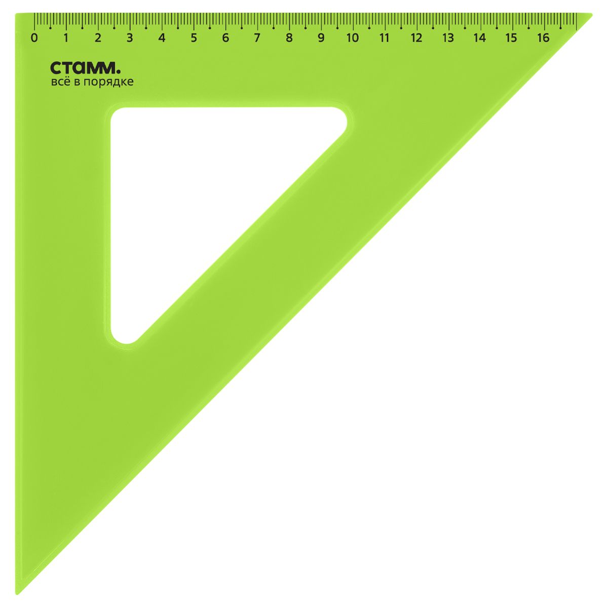 Треугольник 45°, 16см СТАММ, пластиковый, прозрачный, неоновые цвета, ассорти
