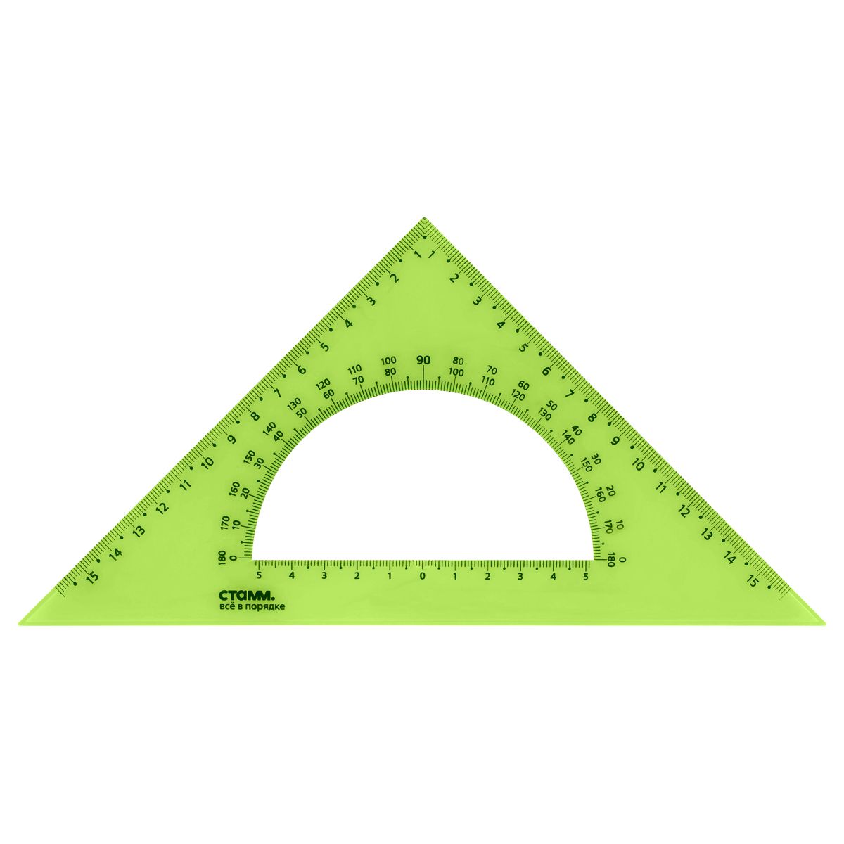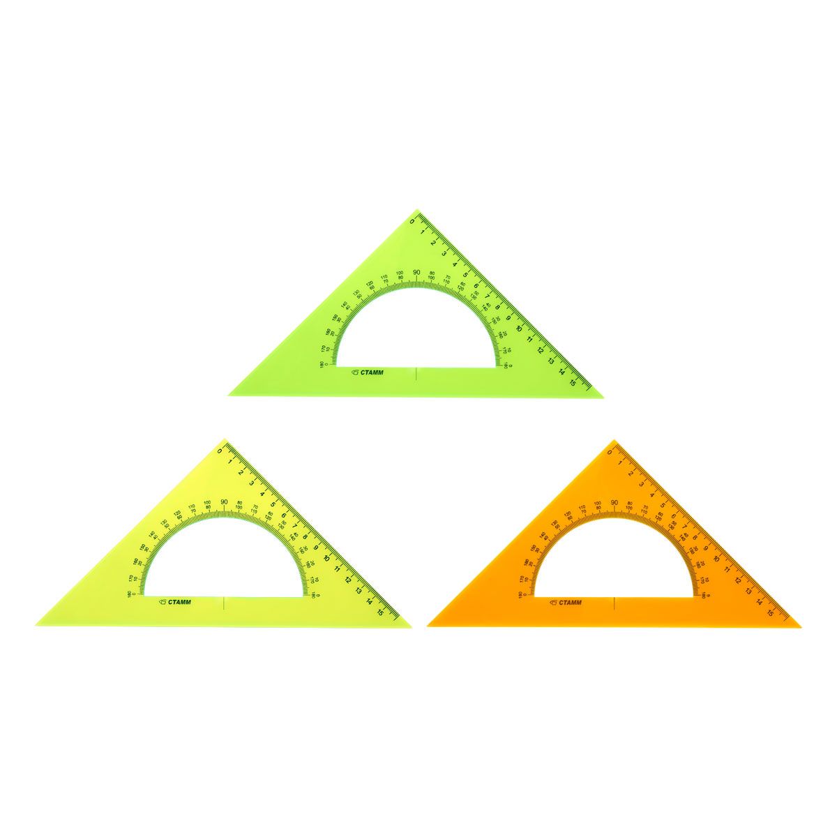 Треугольник 45°, 16см СТАММ, пластиковый, с транспортиром, прозрачный, неоновые цвета, ассорти