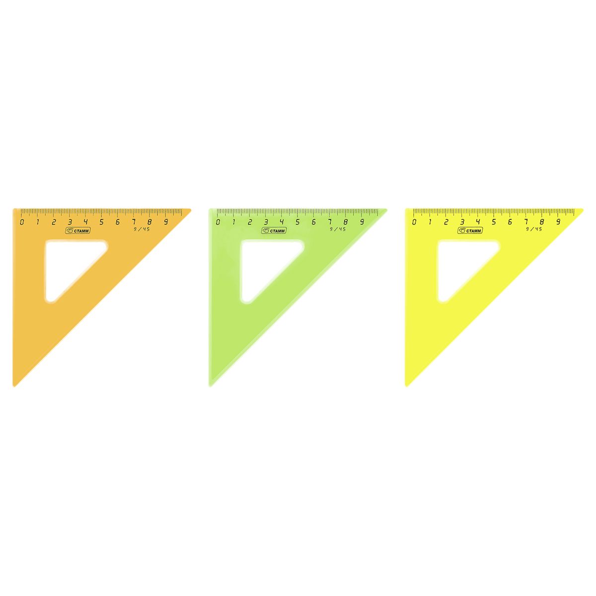 Треугольник 45°, 9см СТАММ, пластиковый, прозрачный, неоновые цвета, ассорти