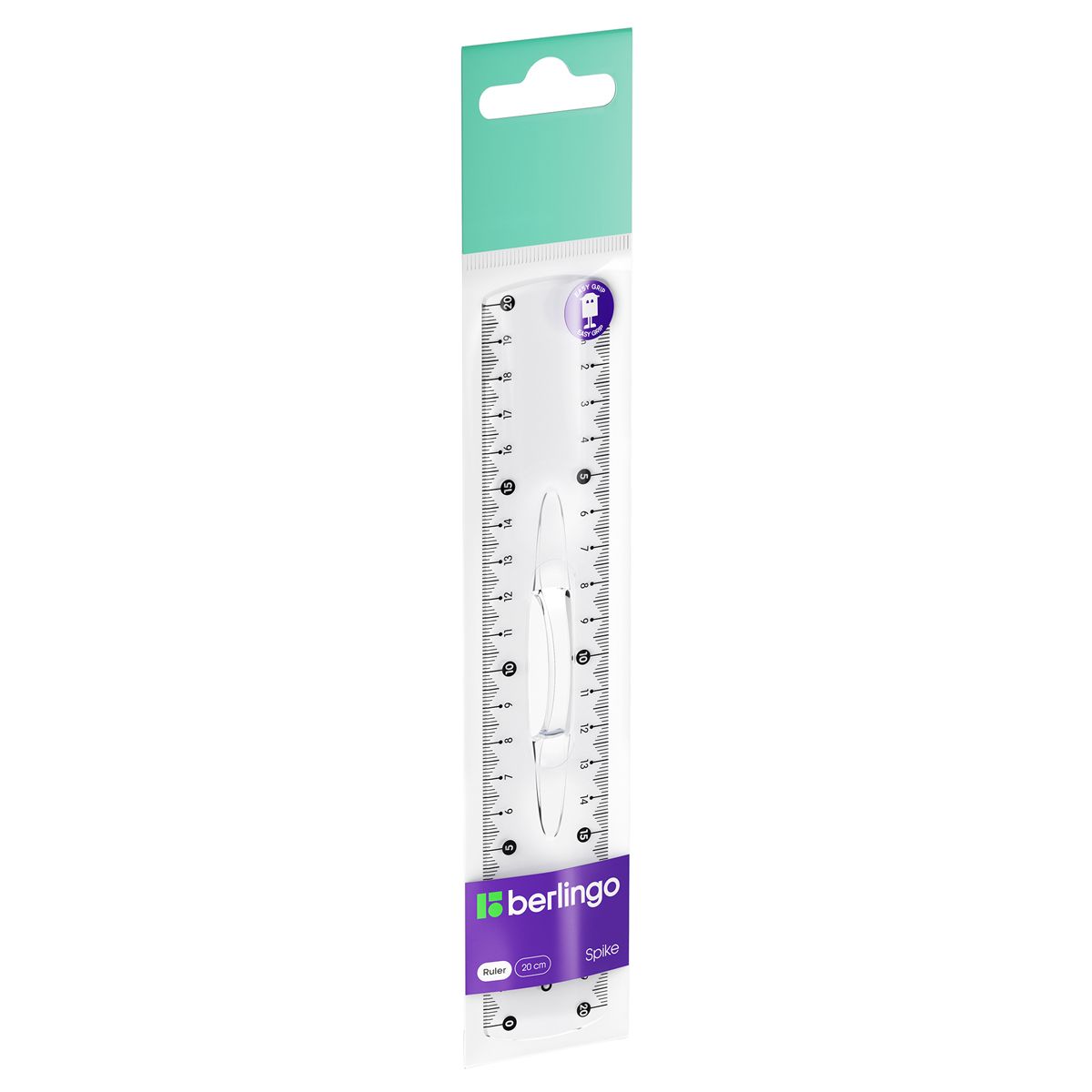 Линейка пластиковая школьная Berlingo Spike 20 см, с эргономичным держателем и безопасными закруглёнными краями. Высококачественная градуировка нанесена с использованием УФ чернил для наилучшей устойчивости. Цвет изделия - прозрачный. Линейка имеет две шкалы. Товар упакован в пакет с европодвесом.
