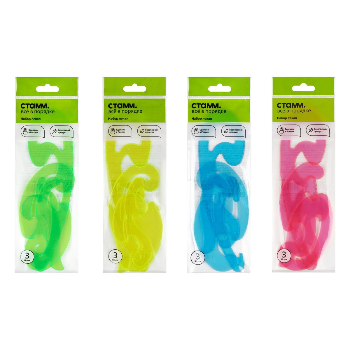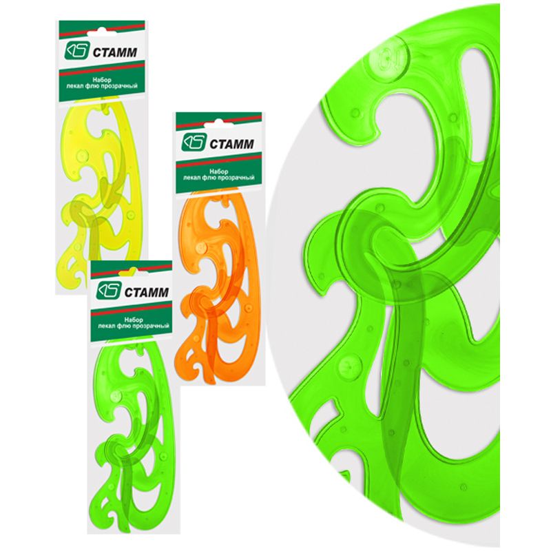 Набор лекал СТАММ, 3шт. (25см, 17см, 12см), пластиковый, прозрачный, неоновые цвета, ассорти, европодвес