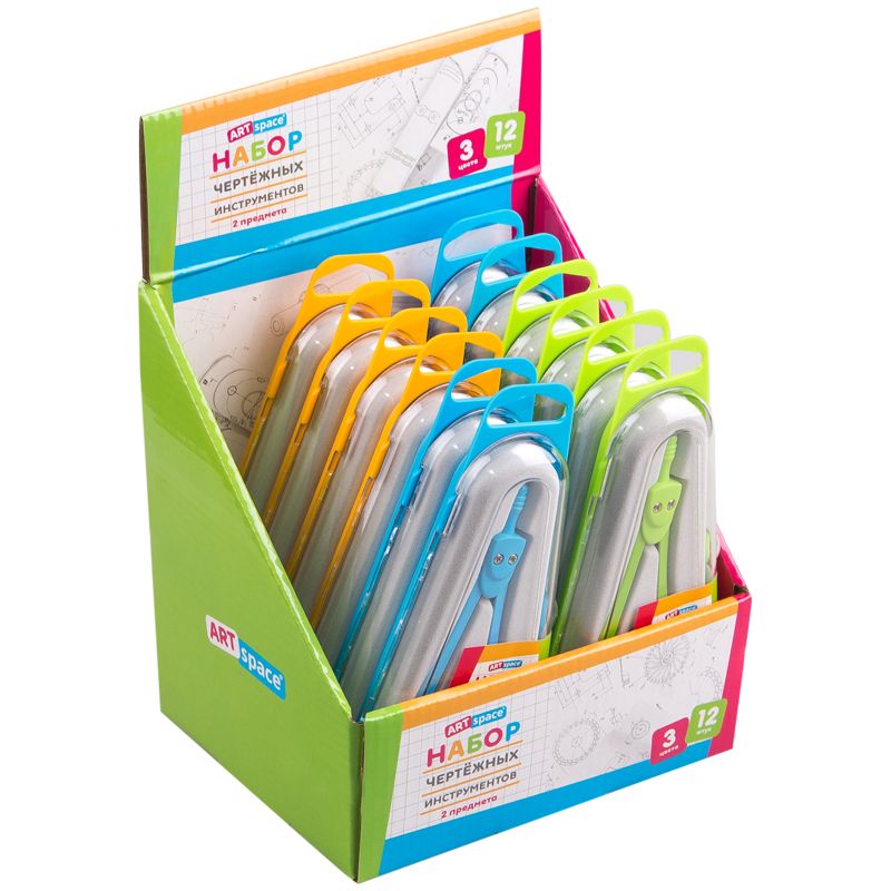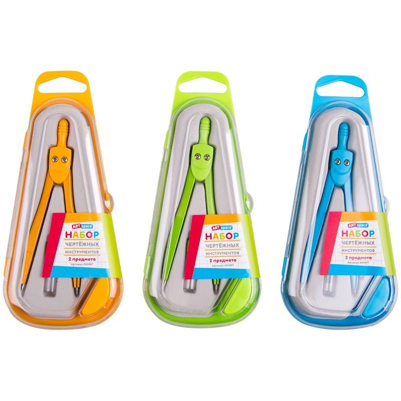 Готовальня ArtSpace, 2 предмета, циркуль 115мм, пластиковый футляр, ассорти