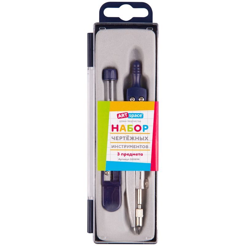 Готовальня ArtSpace, 3 предмета, циркуль 115мм, пластиковый футляр