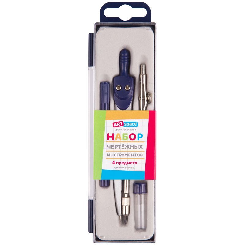 Готовальня ArtSpace, 4 предмета, циркуль 115мм, пластиковый футляр
