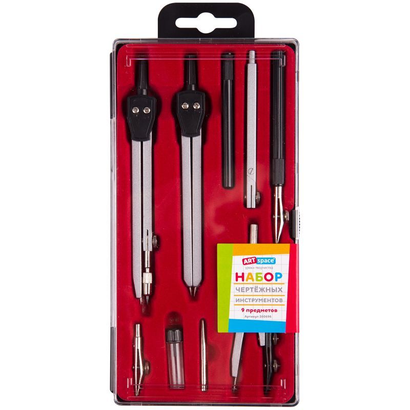 Готовальня ArtSpace, 9 предметов, циркуль 135мм, пластиковый футляр
