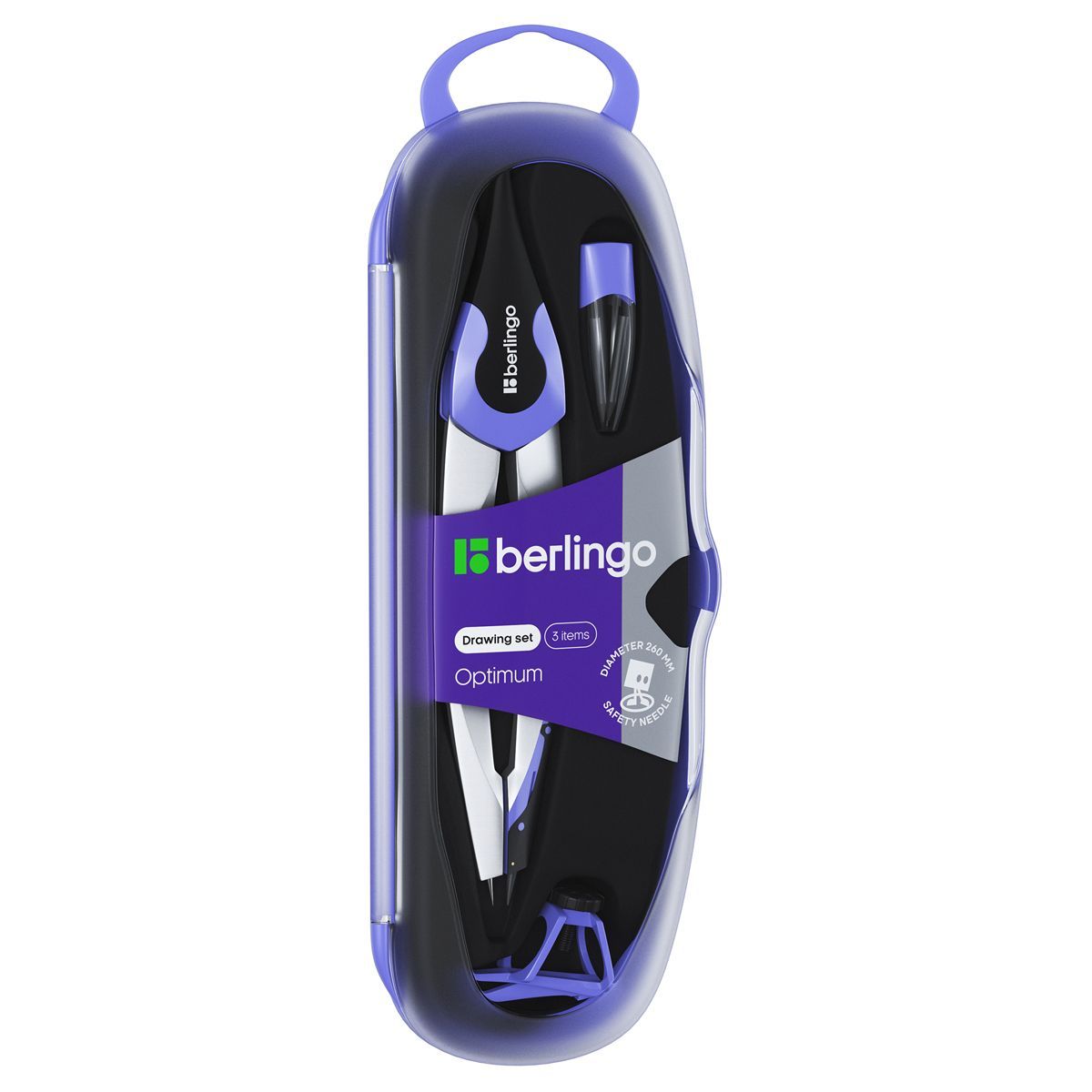 Готовальня Berlingo "Optimum", 3 предмета, циркуль 135мм, пластиковый футляр, фиолетовый