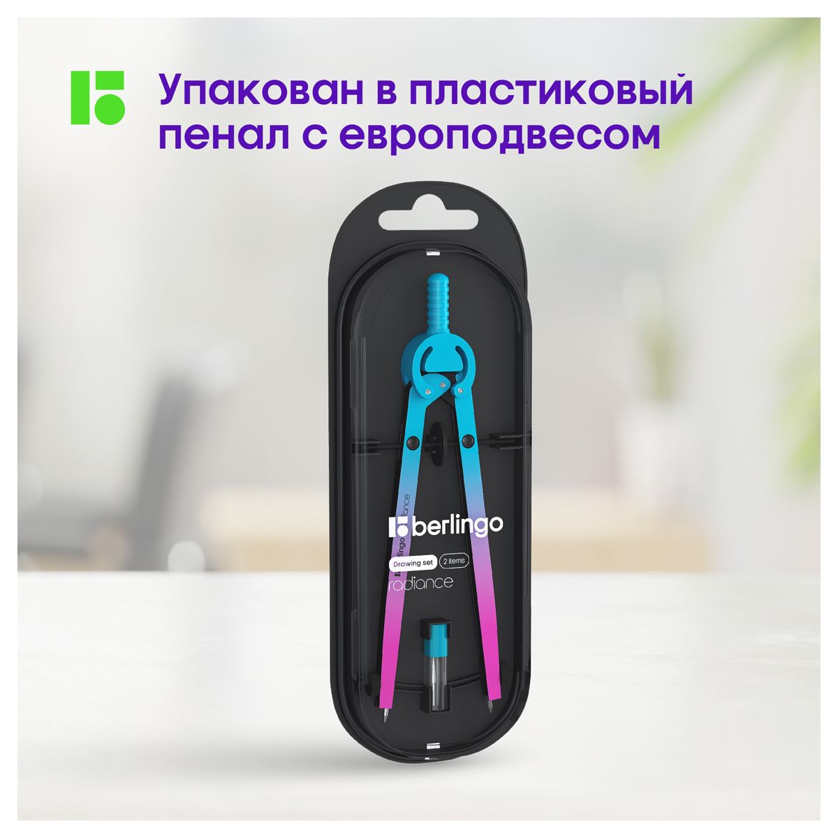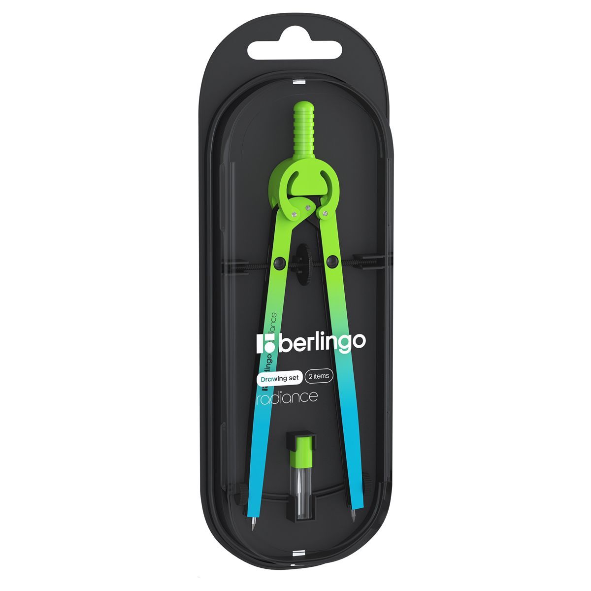 Готовальня Berlingo "Radiance", 2 предмета, циркуль 170мм, голубой/зеленый градиент, пластиковый футляр