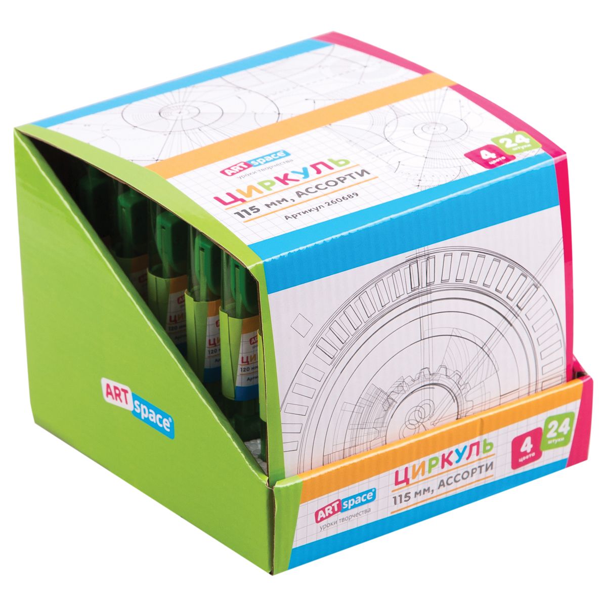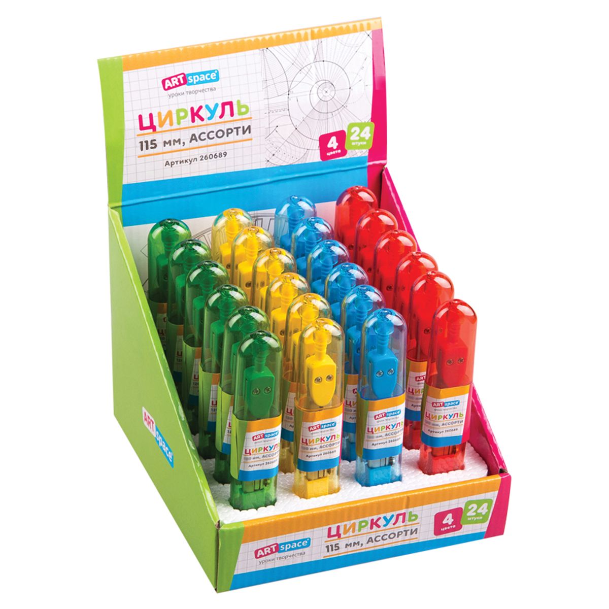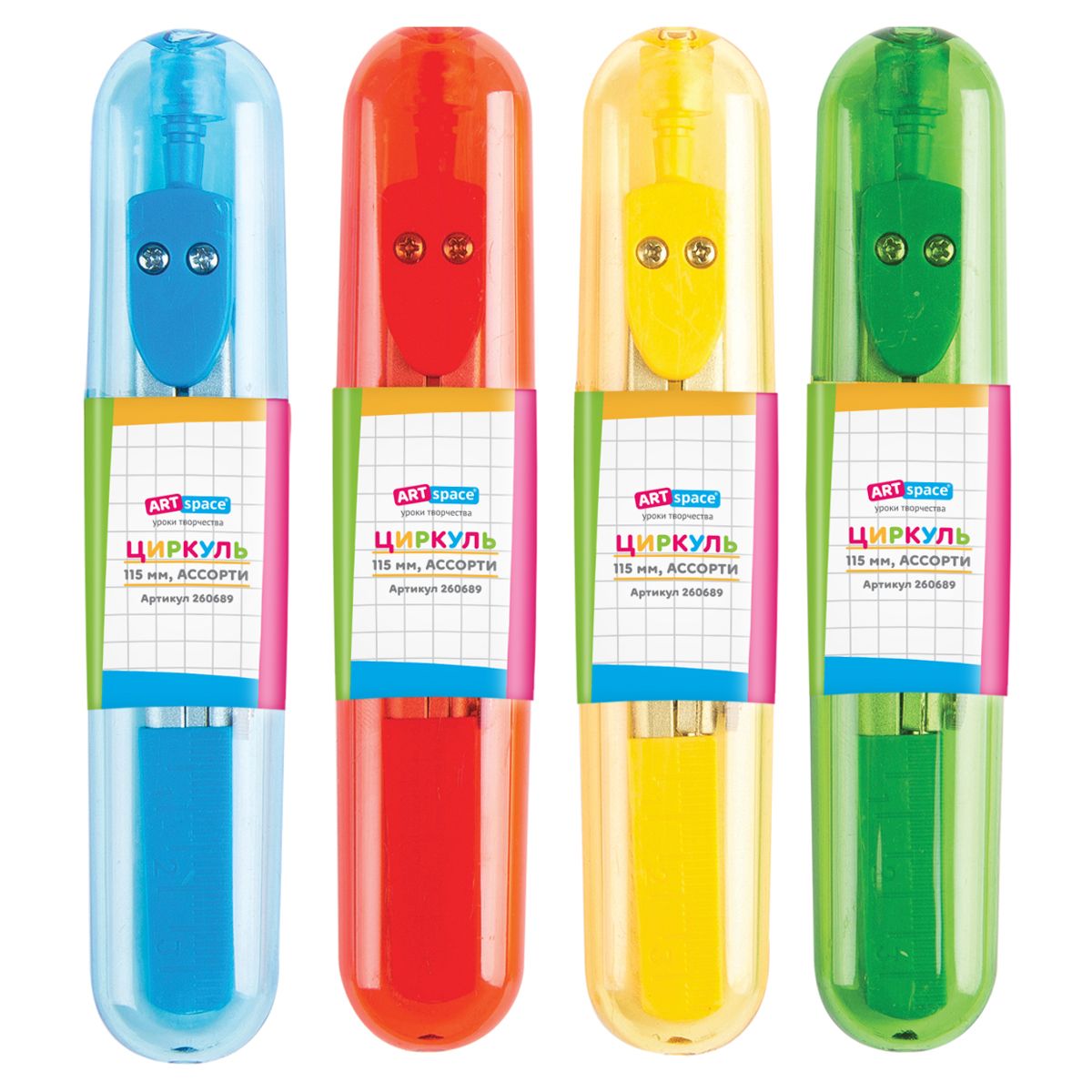Циркуль ArtSpace металлический, 115мм, пластиковый пенал, ассорти