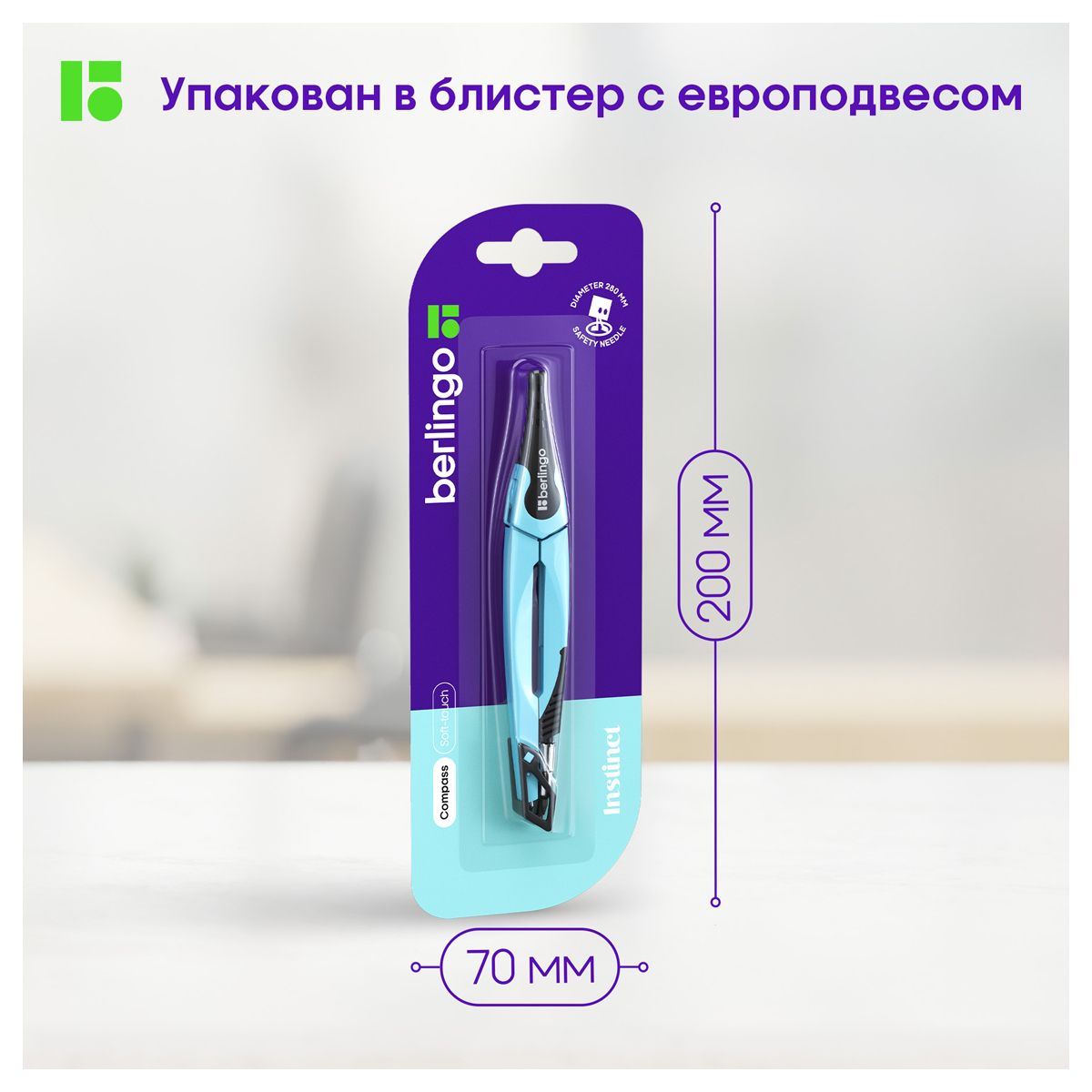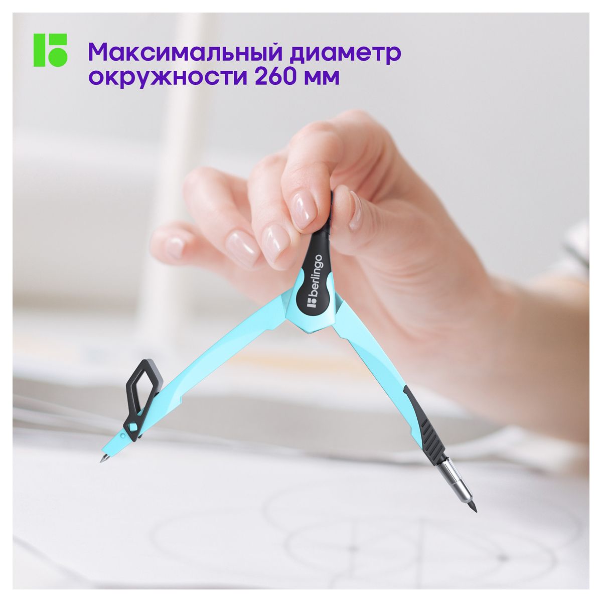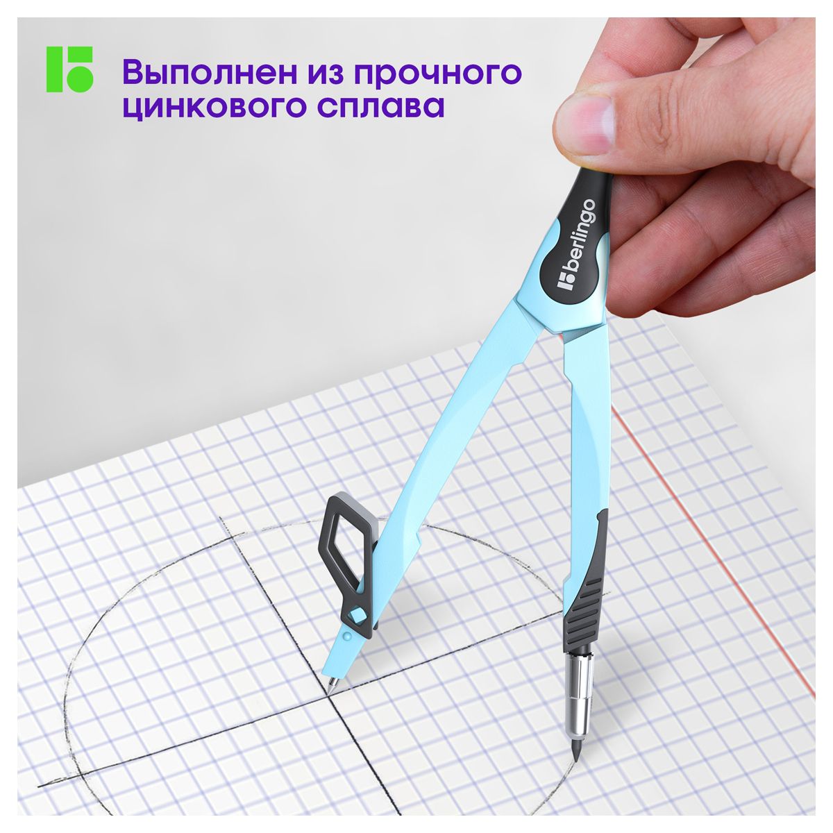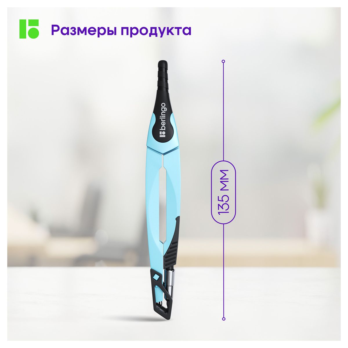 Циркуль Berlingo "Instinct" металлический, 135мм, аквамарин, блистер