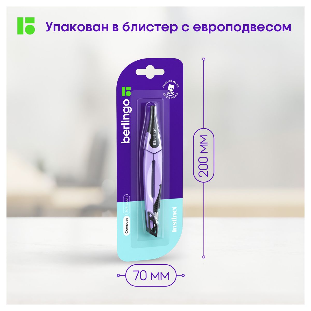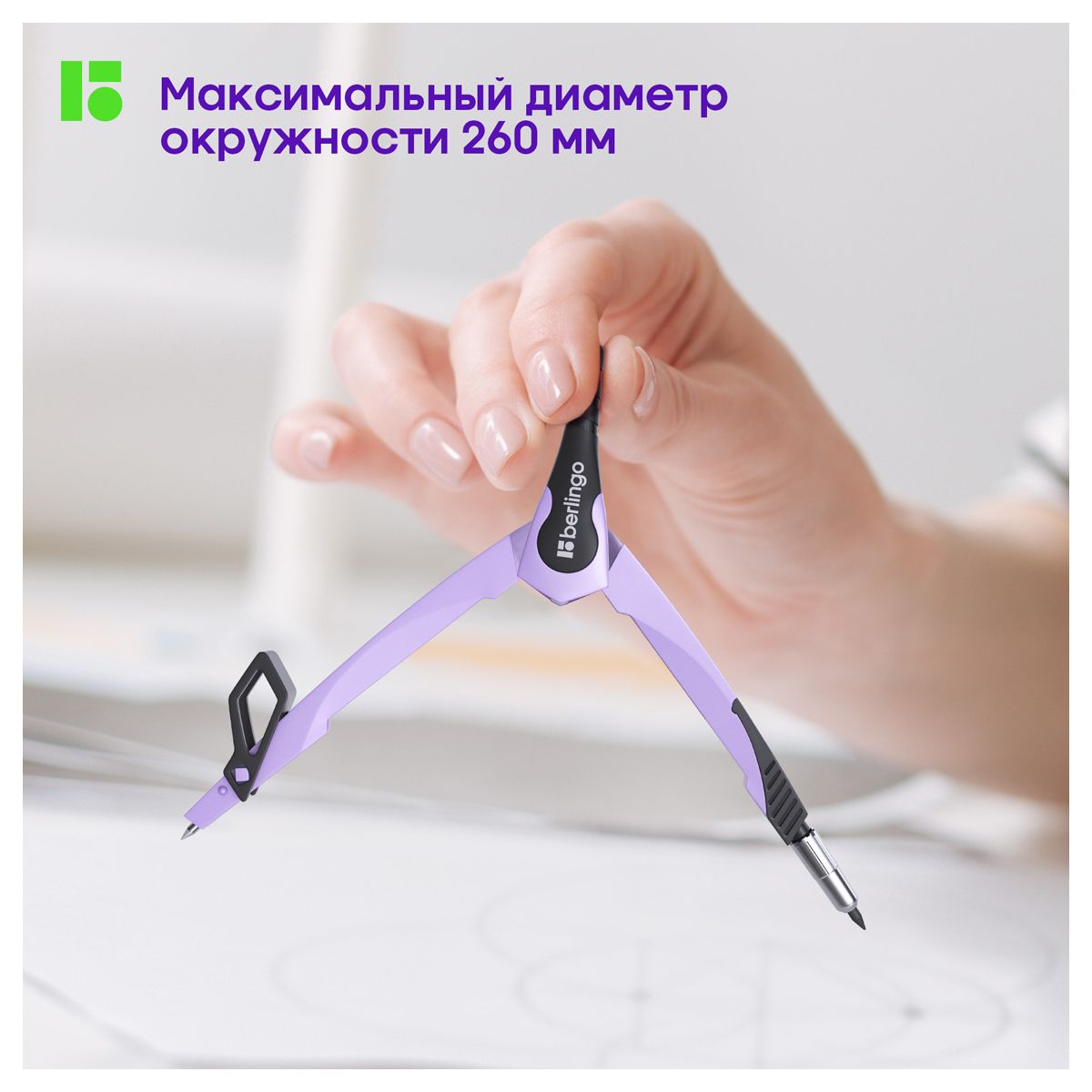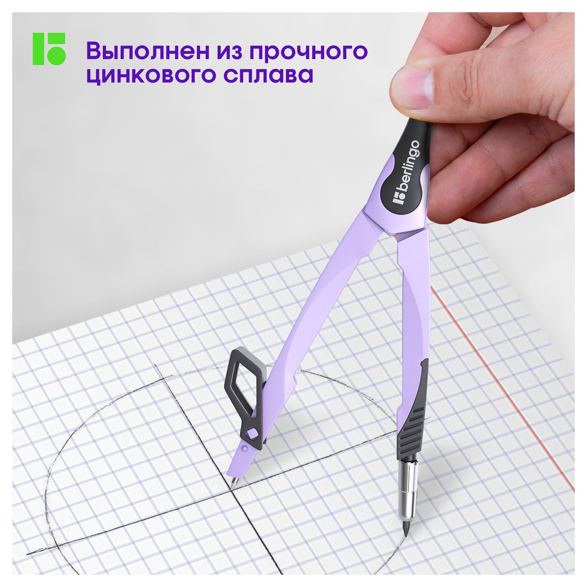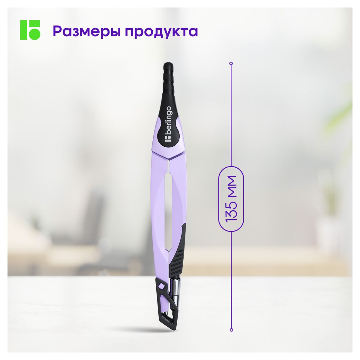 Циркуль Berlingo "Instinct" металлический, 135мм, лаванда, блистер