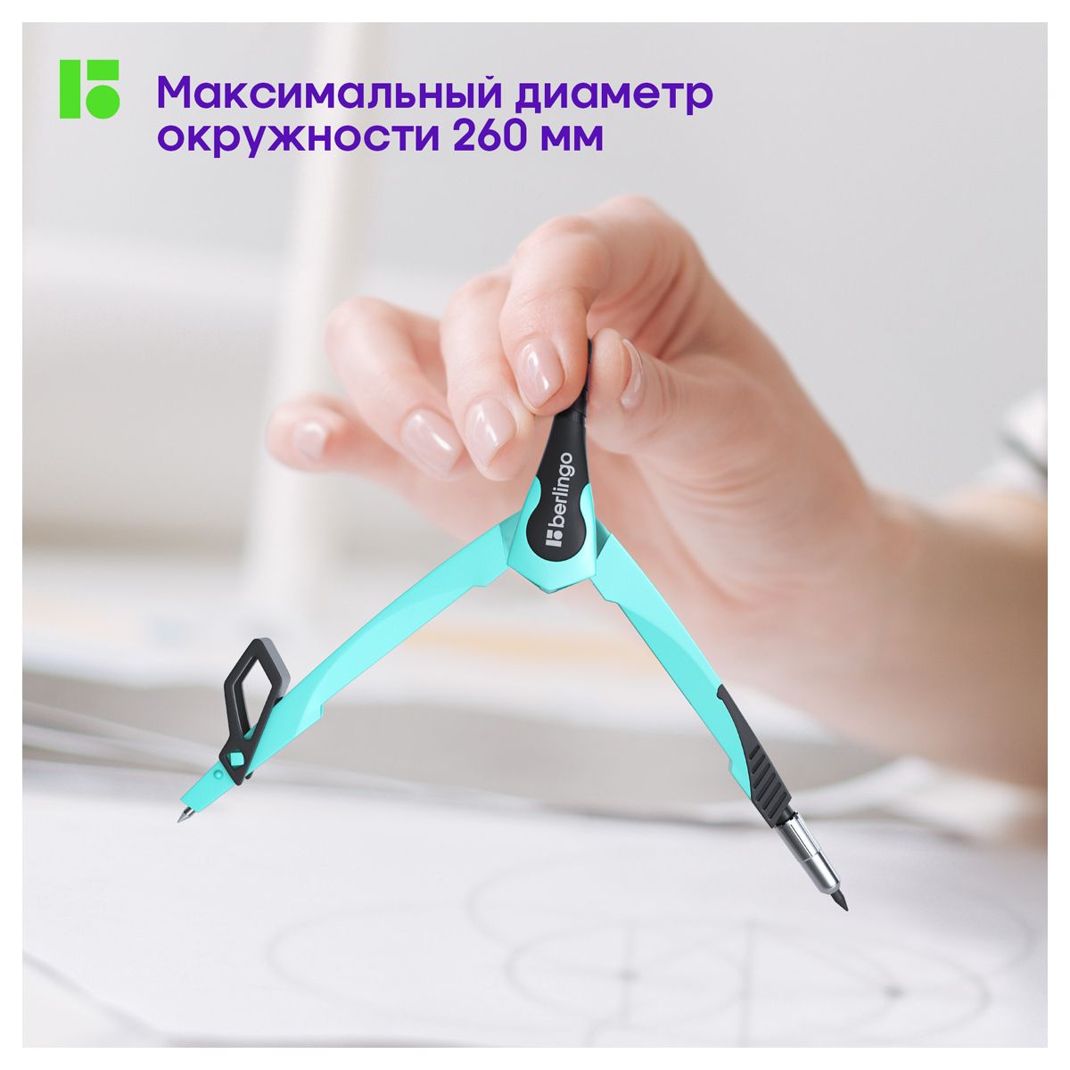 Циркуль Berlingo "Instinct" металлический, 135мм, мятный, блистер