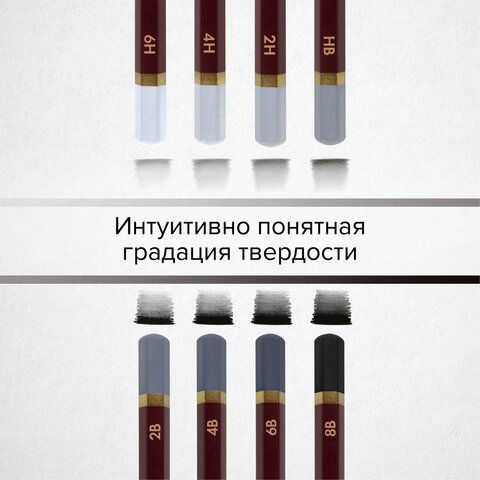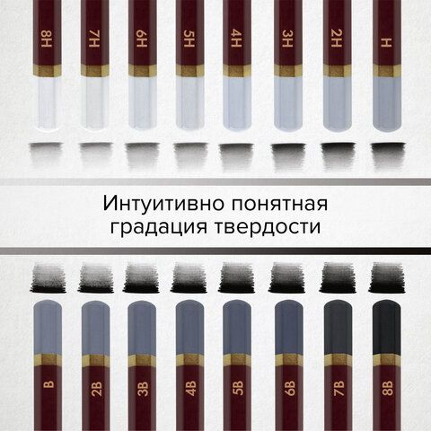 • Набор карандашей ч/г Красин "Для черчения", 8 шт., Н-2, НВ — идеален для студентов и чертёжников