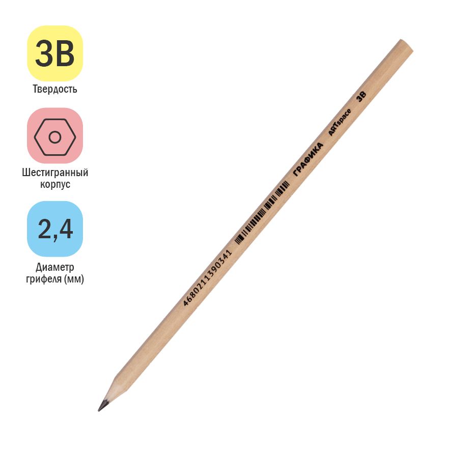 Карандаш ч/г ArtSpace "Графика" 3B, заточен.