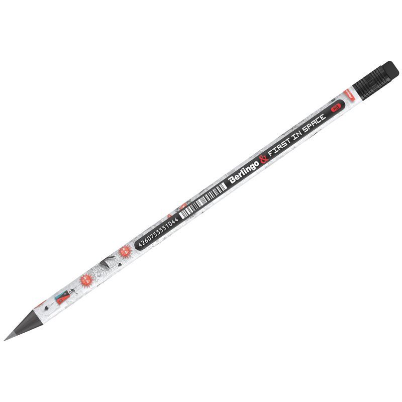 Карандаш ч/г Berlingo "First in Space" HB, черное дерево, круглый, заточен., с ластиком