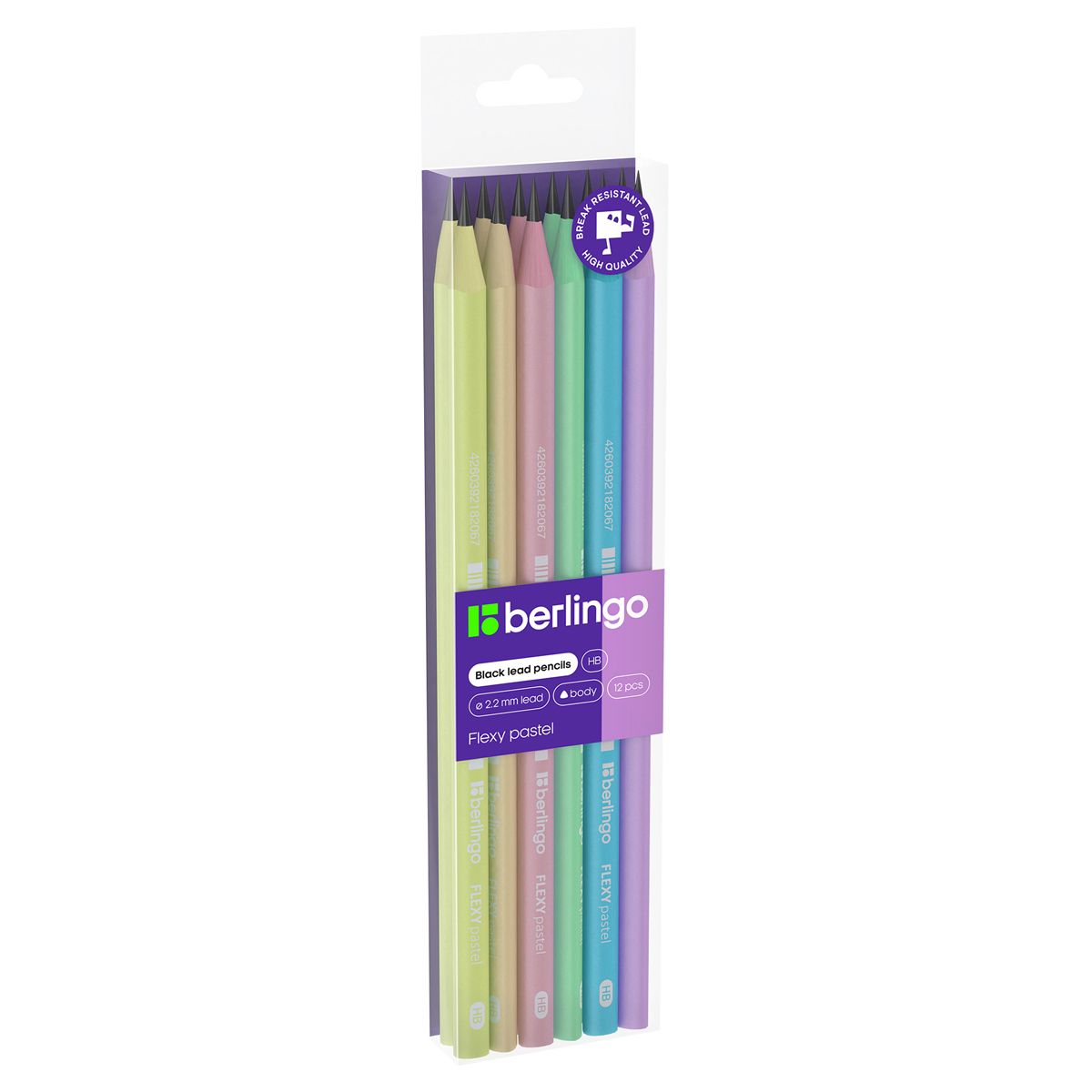 Карандаш ч/г Berlingo "Flexy Pastel" HB, трехгранный, заточен., пластиковый, ПВХ-бокс