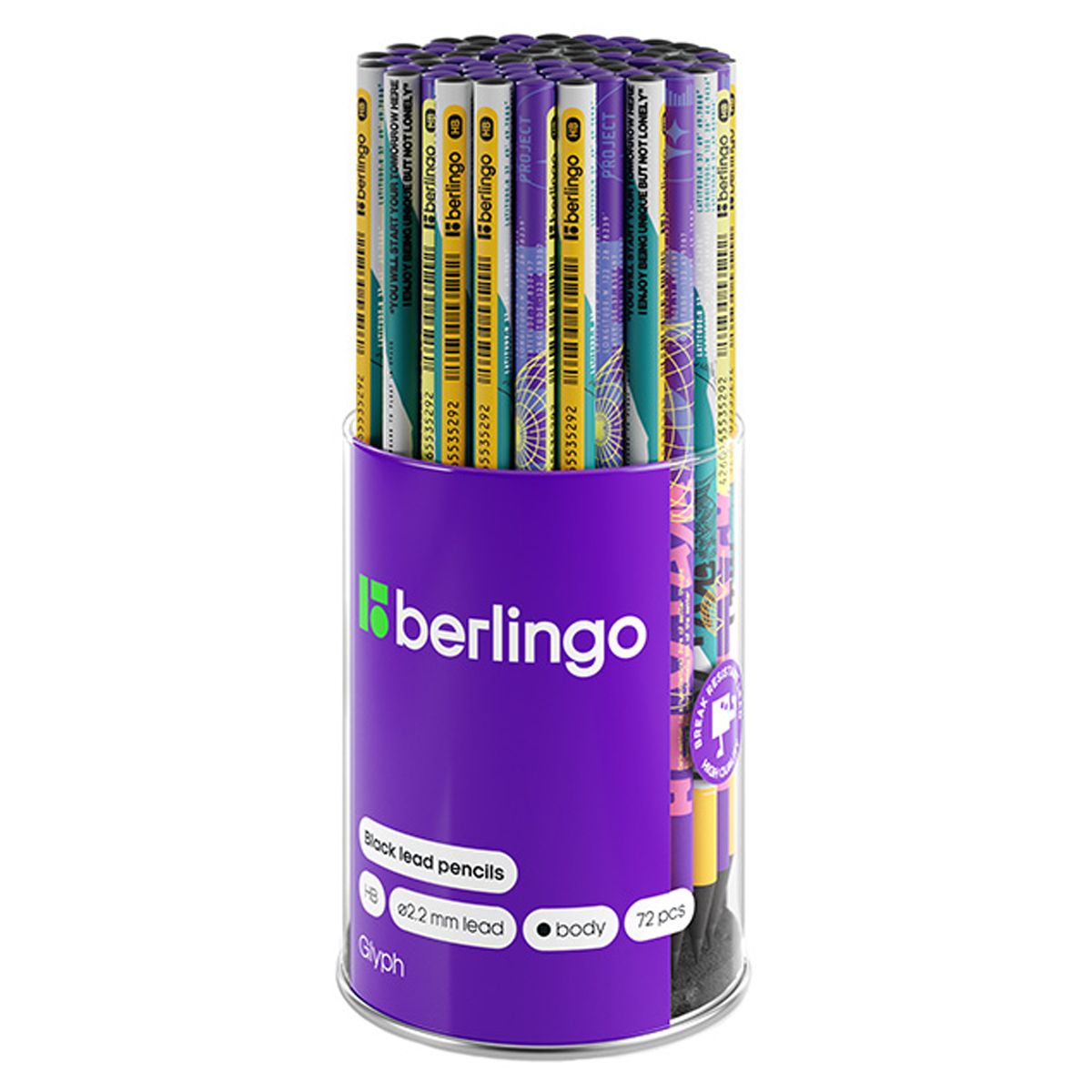 Карандаш ч/г Berlingo "Glyph" HB, круглый, заточен., ассорти