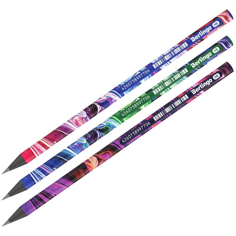 Карандаш ч/г Berlingo "Liquid Wave" HB, черное дерево, круглый, заточен., ассорти