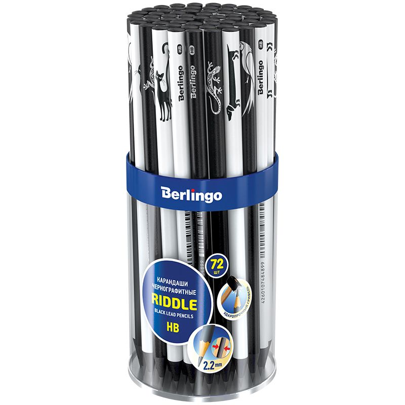 Карандаш ч/г Berlingo "Riddle" HB, черное дерево, круглый, заточен., ассорти