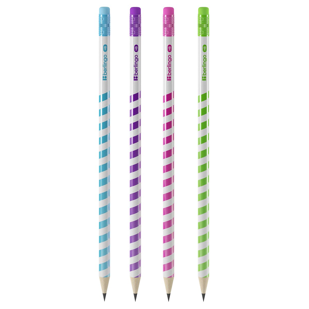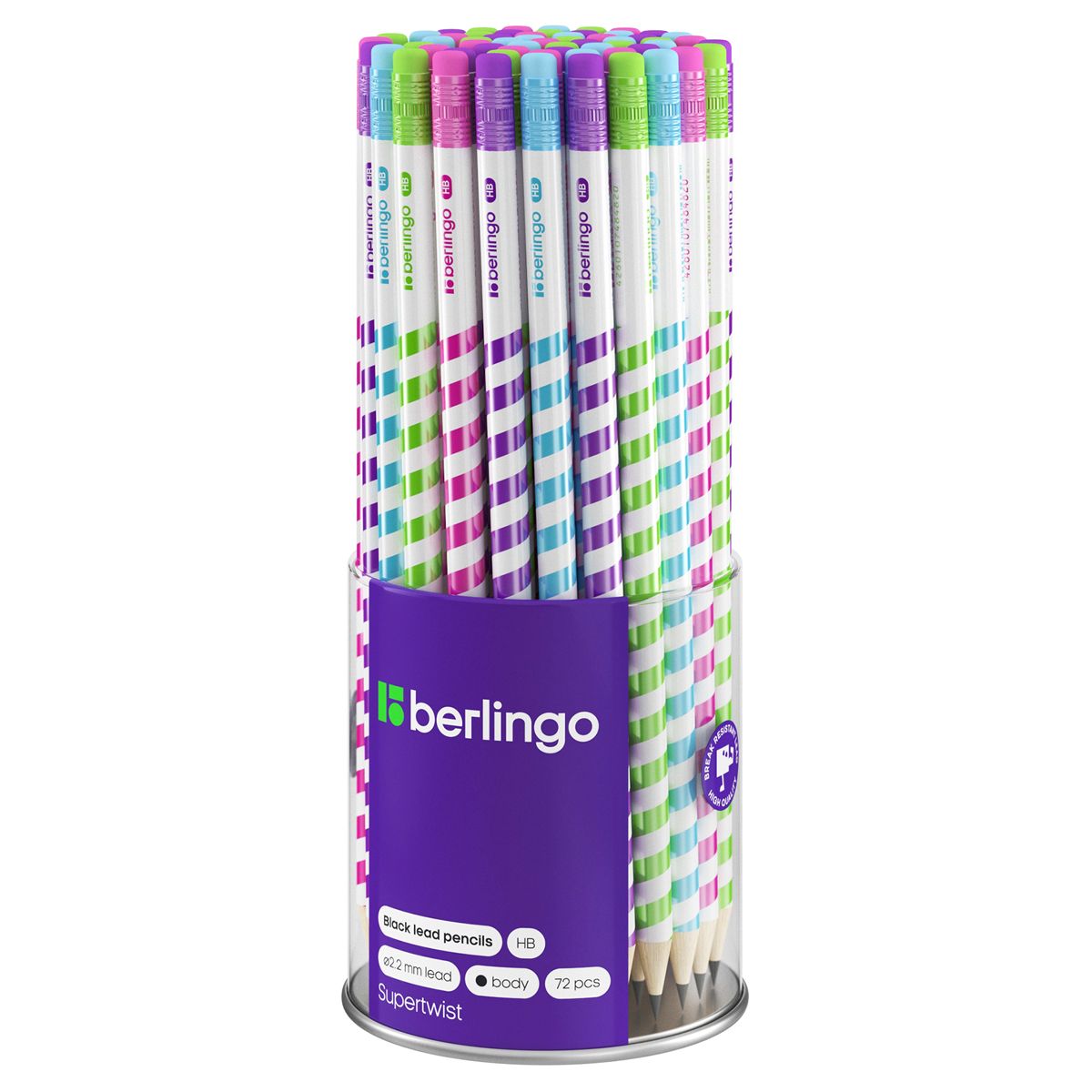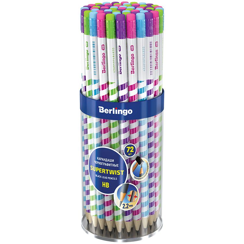 Карандаш ч/г Berlingo "Supertwist" HB, круглый, заточен., с ластиком, ассорти