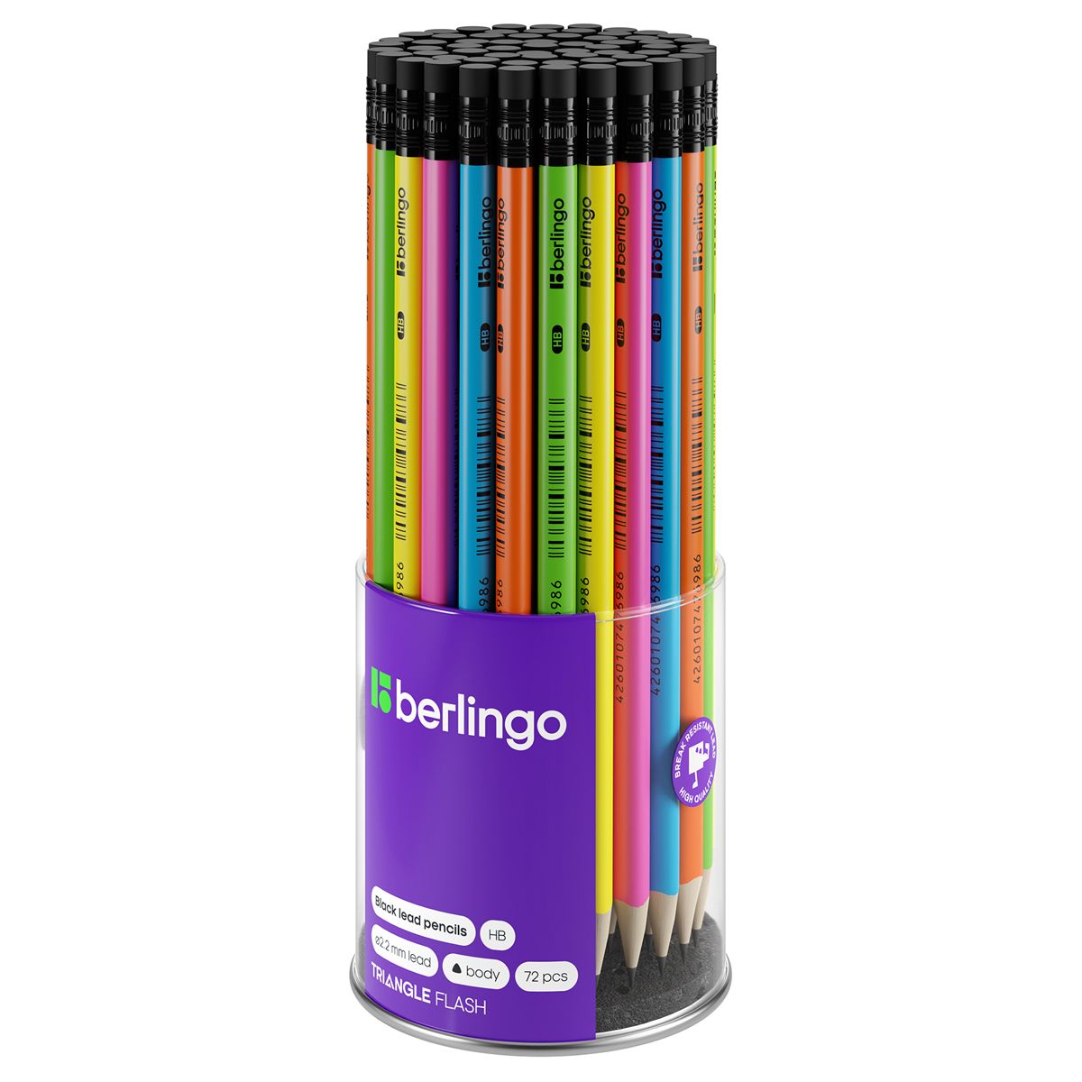 Карандаш ч/г Berlingo "Triangle flash" HB, трехгранный, c ластиком, заточен.