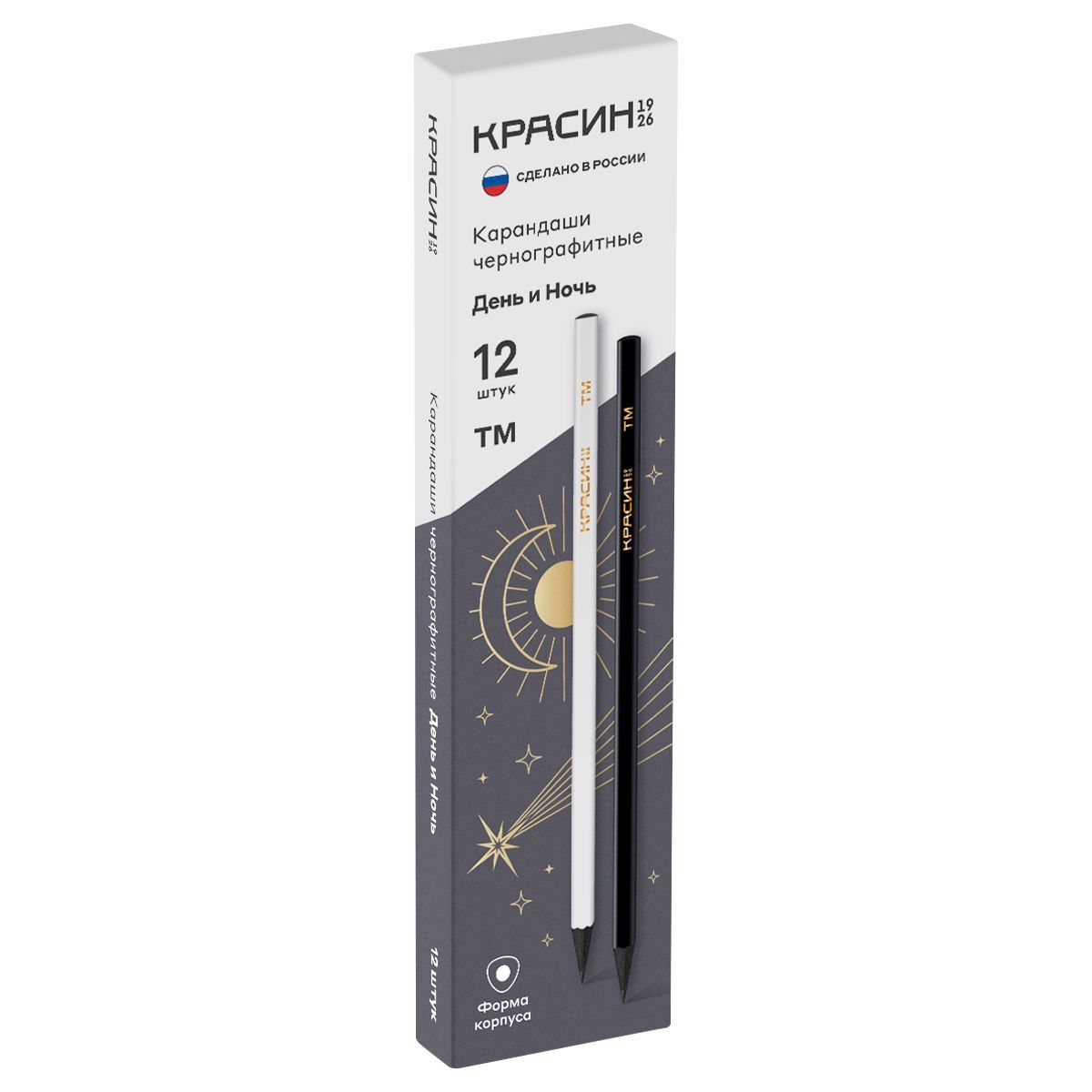 Карандаш ч/г Красин "День и Ночь" ТМ (НВ), трехгр., чёрное дерево, заточен., ассорти.