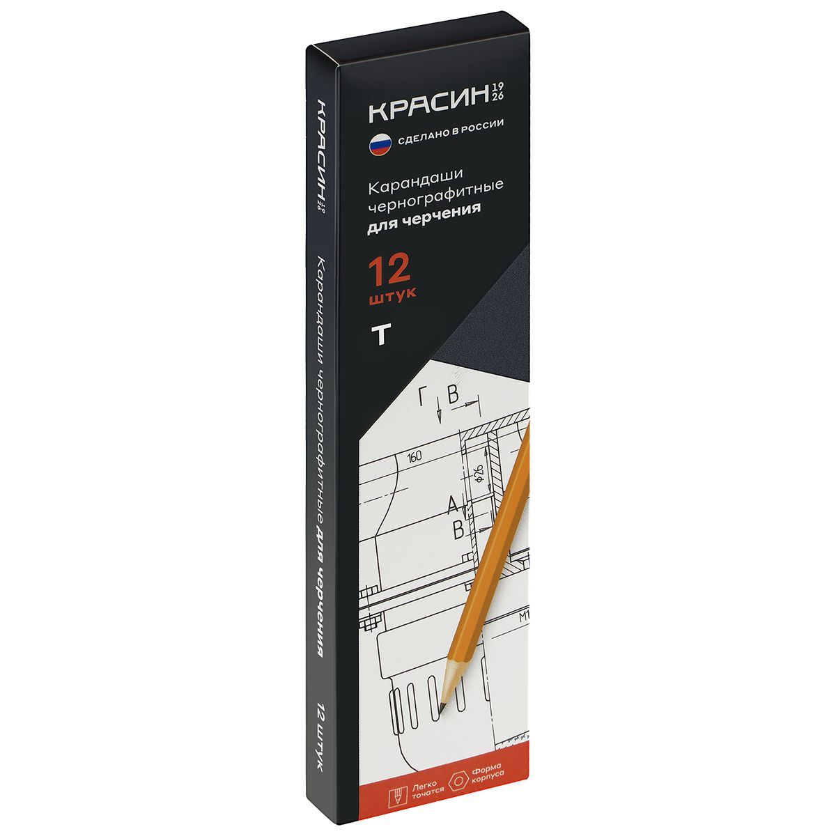 Карандаш ч/г Красин для черчения Т (Н), шестигр., заточен.