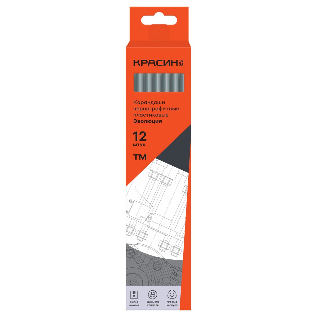 Карандаш ч/г Красин "Эволюция" ТМ (HB), черный корпус, заточен., пластиковый